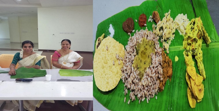 On the occasion of the Onam Celebration, the Student Nurses Association of Manipal College of Nursing celebrated Onam on 4th September 2023, In the morning at 10 am, the inauguration was done by lighting the lamp by Dr. Judith A Noronha, Dean MCON, Dr. Tessy Treesa Jose, Associate Dean MCON, SNA Advisor and HODs in the ground floor of MCON Manipal, followed by the Onam Sadhya organized by the SNA Club for the students and faculty of MCON, Manipal. There were 15 varieties of food items including rice, sambar, aviyal, cabbage thoran, inji curry, erisheri, buttermilk, and payasam served on a Banana leaf. The nursing students of BSc., PBBSc, MSc. & NPCC batch has participated in the Onam Sadhya celebration. The faculty of MCON, PhD Scholars, and Research Assistants also joined to have delicious Sadhya. A total of 320 members participated in the Sadhya.