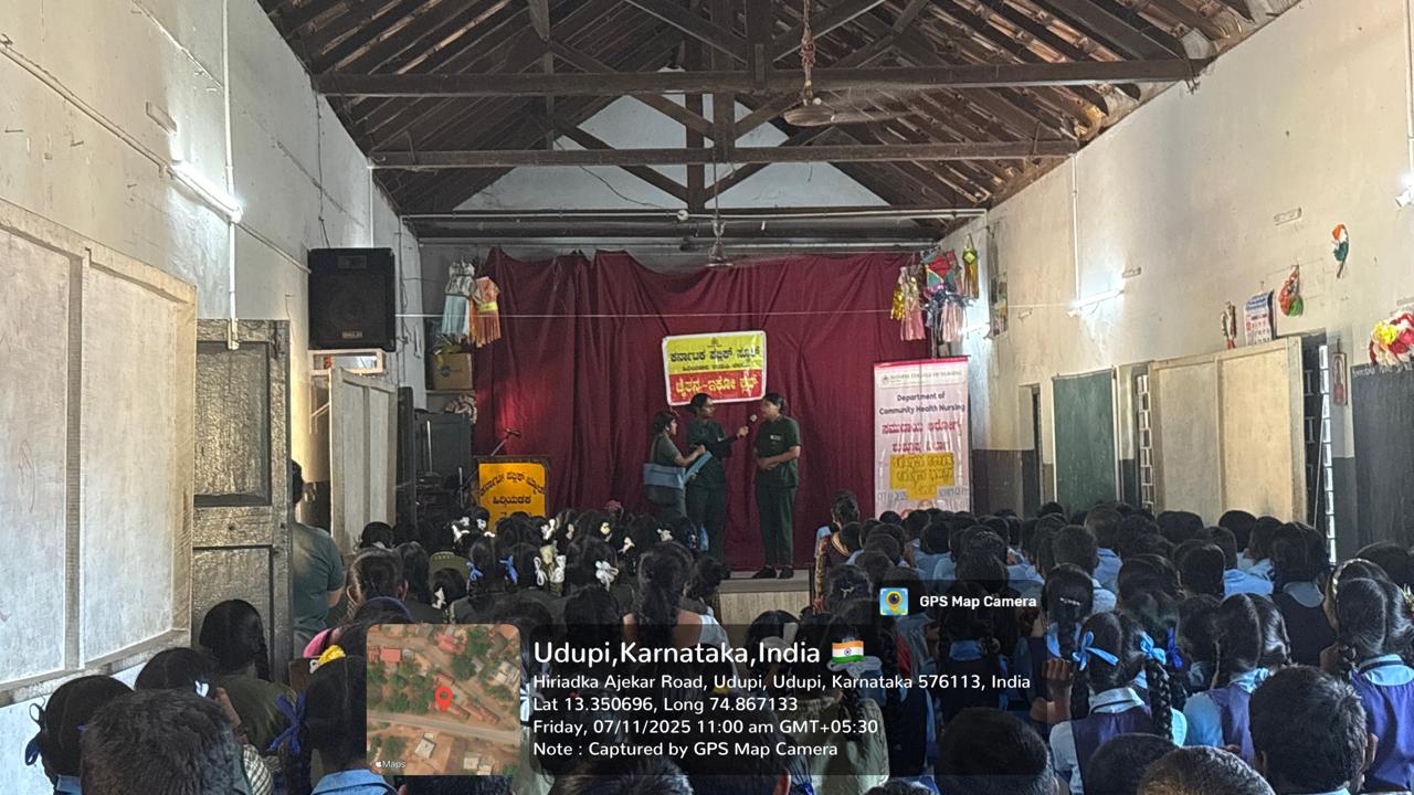 The faculty of the Department of Community Health Nursing and the students of the 7th semester BSc Nursing, Manipal College of Nursing, MAHE, Manipal, organized a School Health Programme on Nutrition Awareness titled “Healthy Plate, Healthy Future” at Karnataka Public School, Hiriyadka, Udupi Taluk, on 7th November 2025. Ms. Esther, a 7th semester BSc Nursing student at MCON, served as the Master of the Ceremony and warmly welcomed the gathering. Mrs Revathi, Headmistress of Karnataka Public School, Hiriyadka, addressed the students and emphasized the importance of maintaining a healthy diet during childhood to promote overall growth and development. Following this, Ms. Surekha, Lecturer, Department of Community Health Nursing, MCON, MAHE, Manipal, enlightened the young minds on the significance of good nutrition, the ill effects of unhealthy eating habits, and motivated the students to adopt healthy dietary practices for a bright and healthy future.
