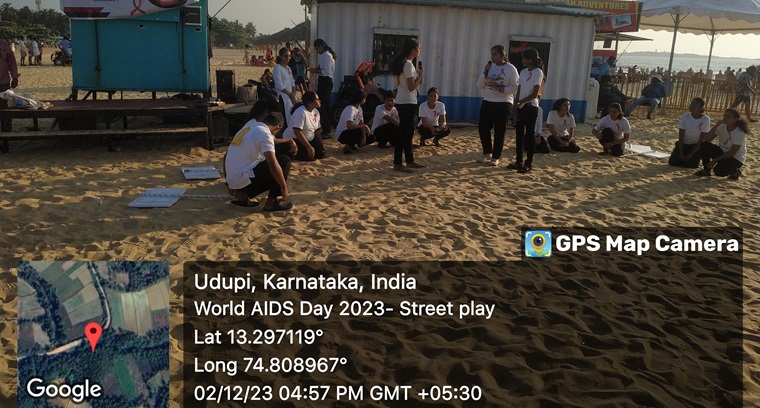 On the occasion of World AIDS Day, the Department of Fundamentals of Nursing, Manipal College of Nursing, Manipal, along with First Semester BSc Nursing students, conducted a street play and formed a seashore human chain to create awareness of the risk factors, social stigma, prevention, and effective management of HIV/AIDS on December 2, 2023, at Malpe Beach. A total of 25 students participated in the street play.