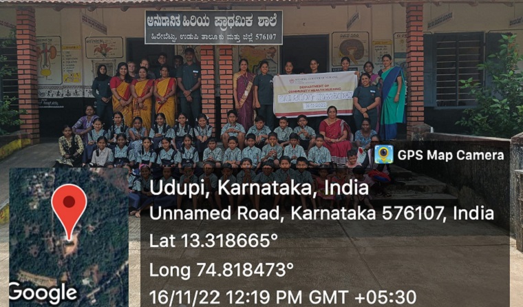 Faculty of Department of Community Health Nursing & students of 2nd Year PBBSc Nursing, Manipal College of Nursing, Manipal, organized the “School health programme at Government aided Primary school & Higher primary school, Hirebettu on 16th November 2022. Ms. Anusha, 2nd Year PBBSc Nursing student, MCON, Manipal welcomed the gathering. The program was inaugurated by Mrs. Sumangala, Nursing Officer, Primary Health Centre, Hirebettu. Followed by that, Dr. Ansuya, Assistant Professor, MCON enlightened young minds on a balanced diet and highlighted the importance of consuming healthy diets.