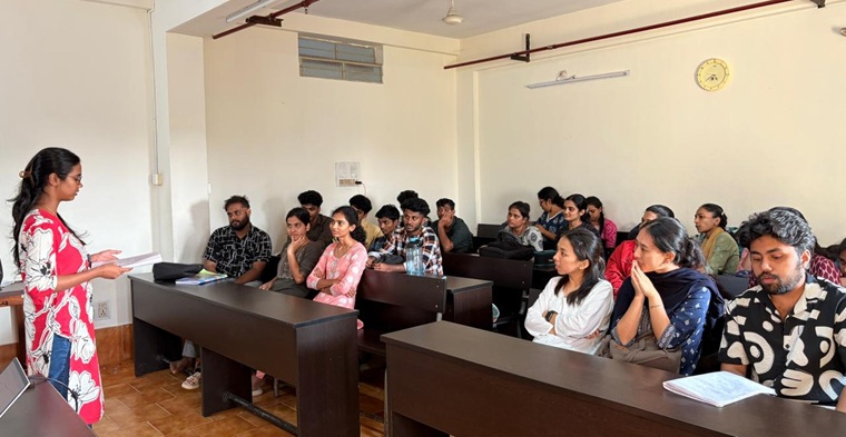 The resource person for the session was Ms. Preejana Sharma, PhD Scholar, Department of Fundamentals of Nursing, Manipal College of Nursing, MAHE, Manipal. The session aimed to familiarize participants with the fundamental concepts of nursing research and to initiate their interest in pursuing research in the future. Ms Preejana engaged students through an interactive brainstorming activity, where participants worked in groups to identify common nursing problems and propose possible solutions. Students actively participated, shared ideas, and discussed how simple observations can evolve into meaningful research topics. The session also aligned with SDG 3 (Good Health and Well-Being) and SDG 4 (Quality Education) by encouraging evidence-based practice and promoting research-oriented learning.