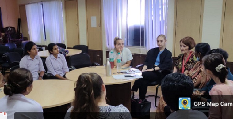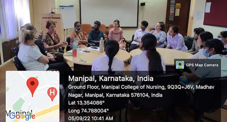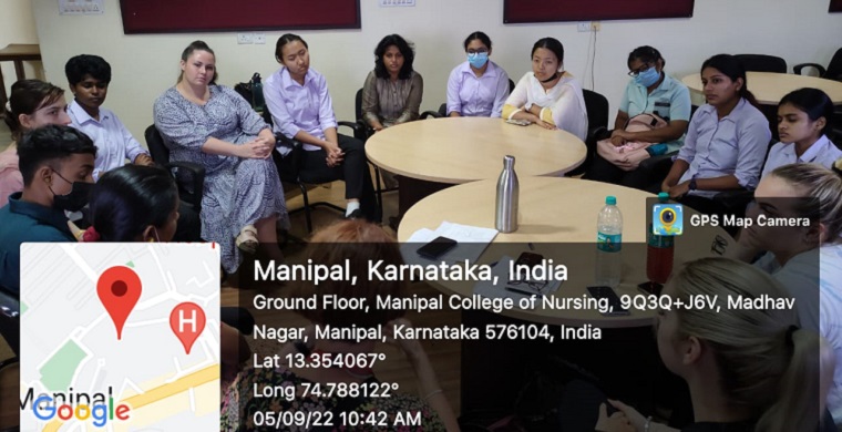 Students from MAHE and EdgeHill Universities discussed the course, curriculum planning, and availability of student support systems including counseling, guidance, extra classes, and library facilities. This session was facilitated by Dr. Toni Bewley, the Adjunct Faculty of MCON and Senior Lecturer, School of Nursing, Edge Hill University, UK, and Dr. Radhika R Pai, Assistant Professor from MCON.