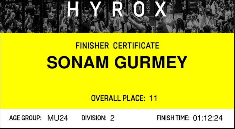 Competing in the 16–24 age category, Mr. Gurmey secured an impressive 2nd place, finishing 11th overall among 900 global participants. The HYROX format challenged athletes with eight 1-km runs interspersed with functional fitness stations, including SkiErg, Sled Push, Burpee Broad Jumps, Farmers Carry, and Wall Balls.