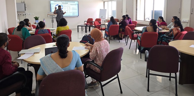 The post-lunch sessions commenced with an interactive session on ‘Budget preparation for applying for grants’ by Dr. Shama Prasada Kabekkodu, Professor and Head, Department of Cell and Molecular Biology, Manipal School of Life Sciences, MAHE, Manipal. The intricacies of the budget for funding were made clear by his talk due to his rich experience of handling the funded projects including the DBT/Wellcome Trust India Alliance grant for which he is the first recipient from MAHE, Manipal. Following this session, the participants were teamed into various groups to materialize the protocols prepared on thrust areas that were decided during the Workshop series -1 namely, Non-Communicable Diseases, Simulation, Maternal health, Elderly care, Infection control, and Learning disabilities, which were facilitated by Dr. Melita Sheilini, Ms. Mitchelle S Lewis, Dr. Sonia RB D’Souza, Mr. Vinish V, Assistant Professor-senior scale, Department of Community Health Nursing, Dr. Anjalin D’Souza, Asst.Professor-selection Grade, Department of Child Health Nursing, and Mr.Renjulal Yesodharan, Asst.Professor-senior scale, Department of Mental Health (Psychiatric) Nursing, MCON,MAHE, Manipal respectively.