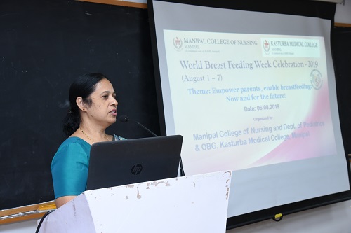 Dr Mamatha S Pai, Professor, Dept. of Child Health Nursing, MCON, Manipal gave an overview of the activities of World Breastfeeding Week celebrations 2019.