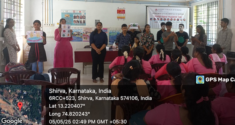 To mark the World Hand Hygiene Day, the Department of Fundamentals of Nursing at Manipal College of Nursing (MCON), MAHE, Manipal, organized an awareness program at the Community Health Centre, Shirva, on 5th May 2025 from 2:30 pm to 3:30 pm for healthcare workers, including ASHAs. The event began with a role play by II Semester BSc Nursing students, demonstrating the importance of hand hygiene. This was followed by an interactive session by Mrs. Geena Louis Dsouza, Lecturer, MCON on the theme “It Might Be Gloves. It’s Always Hand Hygiene,” covering key topics such as the Five Moments of Hand Hygiene, the judicious use of medical gloves, their environmental impact, and common myths and facts about glove usage. To reinforce learning in an engaging way, students performed a handwashing dance, encouraging participants to follow the steps. The session successfully educated 35 healthcare workers, contributing to SDG 3 (Good Health and Well-being) and SDG 4 (Quality Education) by promoting best practices in infection prevention and community health education.