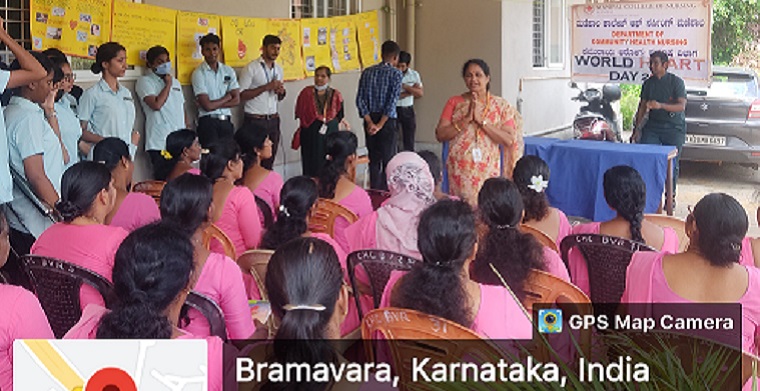 World heart day was observed by the faculty of the Department of Community Health Nursing and students of final year B.Sc. Nursing, Manipal College of Nursing, MAHE, Manipal on 23rd September 2022 from 10:30 am - 11:30 am at Community Health Centre, Brahmavar.