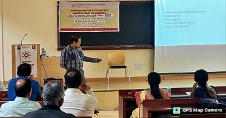 The Department of Psychiatric (Mental Health) Nursing, Manipal College of Nursing Manipal in collaboration with the Rotary Club, Manipal Town have organized a World Mental Health day program on October 10, 2022, between 6-8 pm at Interact building, KMC, MAHE Manipal. The program was started with a welcome address by Rtn. Nithyananda Nayak, President, Rotary Club, Manipal Town. The theme of World Mental Health day, 2022 is “Make mental health and well-being for all a global priority” was introduced by Dr. Binil V, Associate Professor, Department of Psychiatric (Mental Health) Nursing, Manipal College of Nursing, MAHE, Manipal. The program was followed with a skit performed by B.Sc. Nursing students (3rd Year). The chief guest and the speaker for the event was Dr. Anil Kumar MN, Associate Professor, Department of Psychiatry, KMC, Manipal. He addressed the audience with his excellent speech on creating awareness in public regarding various mental illnesses, their causes, management, and tips to instill positive mental health. The speech was well appreciated by the audience. A total of 50 people have witnessed the program. Mrs. Savitha Prabhu, Assistant Professor, and coordinator of the program delivered the vote of thanks.