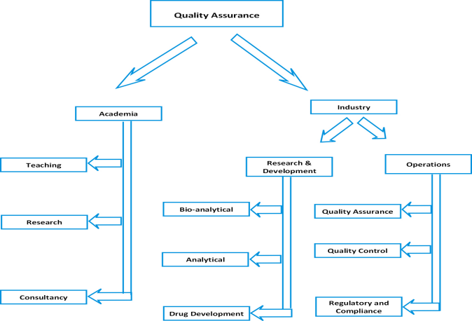 - Pharmaceutical Industries: There are different areas such as quality assurance/control, technology transfer, analytical and bioanalytical method development, production/ manufacturing, validation aspects, drug metabolism and pharmacokinetics (DMPK), clinical research organizations, intellectual property rights, pharmacovigilance, scientific writing and regulatory affairs where candidates of both the disciplines are getting recruited. The scope also includes Regulatory knowledge management, which is a greenfield service domain