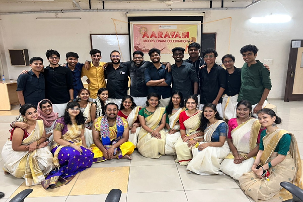 The Kerala student community of MCOPS organized the Onam celebration at MCOPS-AARAVAM 2022, in a grand manner on 21 September 2022. The celebration began with a warm welcome in the form of a beautiful flower carpet ‘Athappookkalam’, at the entrance of the college, arranged by students with their hard work overnight. The program started with ‘Chendamelam’ and the majestic entry of MAVELI, followed by a procession in the college premises. Maveli along with the chief guest Mr. Jose A J, Chief Pharmacist, KMC, were offered a floral welcome by the beautiful girls clad in traditional Kerala saree. This was followed by the inaugural game by the principal Dr C Mallikarjuna Rao and the chief guest Mr. Jose A J by breaking the pot; a game usually frolicked during Onam. During Chendamelam, no one could stop themselves from dancing to the beats. Tug of war involved all the faculty and the students. It was the star event of the evening. The formal events started with lamp lighting, Thiruvathira, address by the Principal and Chief guest, followed by songs and dances by different batches of students. The entire celebration attracted a huge crowd. All students of MCOPS enthusiastically participated in the program and enjoyed it thoroughly. Payasam and Holige were served during the program. The program was coordinated by Mr. Aromal Sunil, PharmD intern with thorough support from faculty members, his peers, and junior batch students.