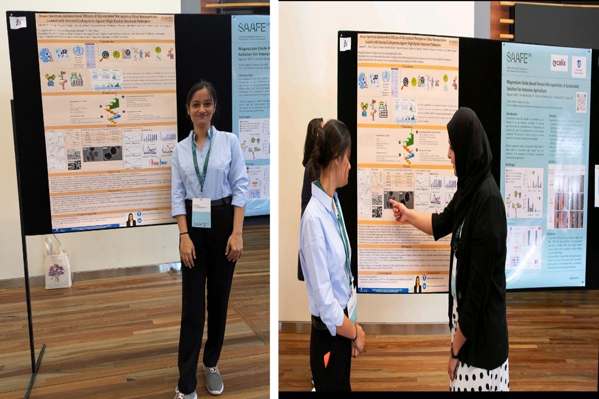 The poster entitled “Broad-Spectrum Antimicrobial Efficacy of Glycosylated Mesoporous Silica Nanoparticles Loaded with Selected Carbapenem Against High-Burden Resistant Pathogens”, highlighted innovative research in combating antimicrobial resistance. This research was funded by the Indian Council of Medical Research, India, and was conducted under the guidance of Dr. Usha Y Nayak at the Manipal College of Pharmaceutical Sciences, Manipal, with co-guidance from Dr. Padmaja A. Shenoy at Kasturba Medical College, Manipal, and Dr. Sanjay Garg at the University of South Australia.