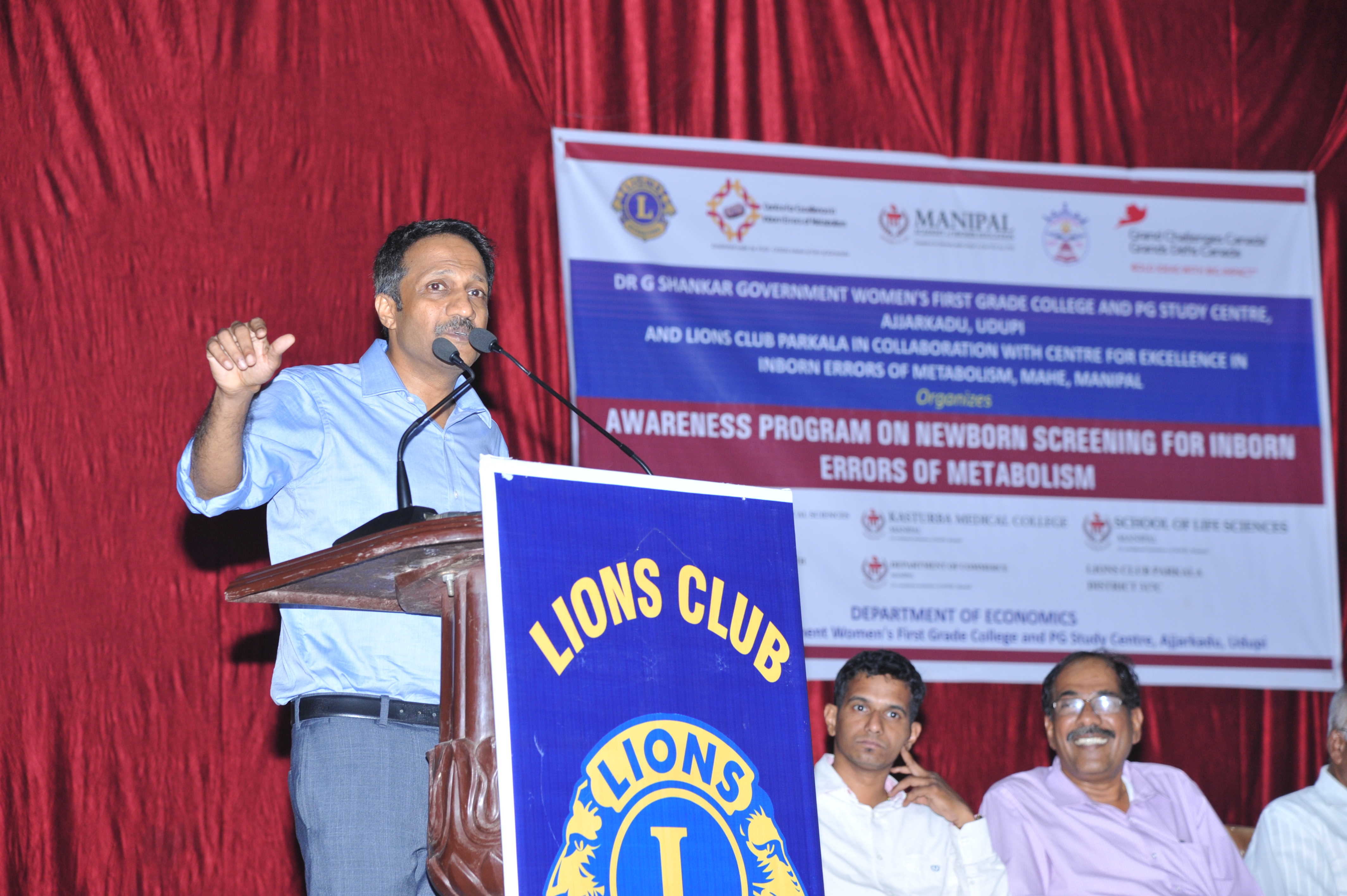 A session on ‘Newborn screening for Inborn errors of metabolism’ for the students of Dr G Shankar Government Women's First Grade College and PG Study Center, Ajjarkadu, Udupi was conducted on 20 February. The program was jointly organized by the Center for excellence in Inborn errors of metabolism MAHE and Lions club, Parkala on 20th Feburary at Town Hall, Udupi.