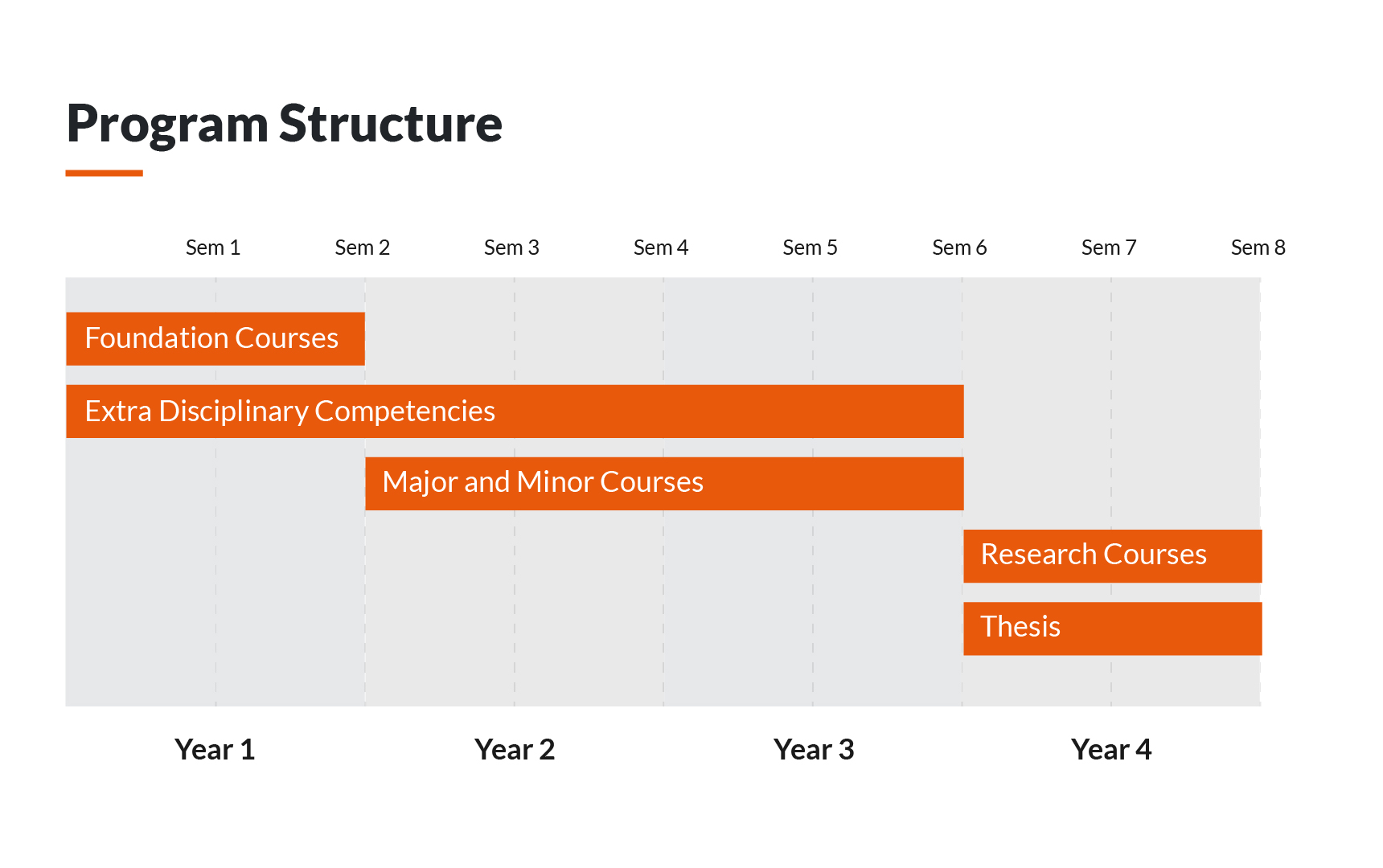 Keeping the larger goals of multi-disciplinarity in mind, the first two semesters of the program offer a wide range of Foundation Courses for a strong grounding in fundamental concepts and recent scholarship.