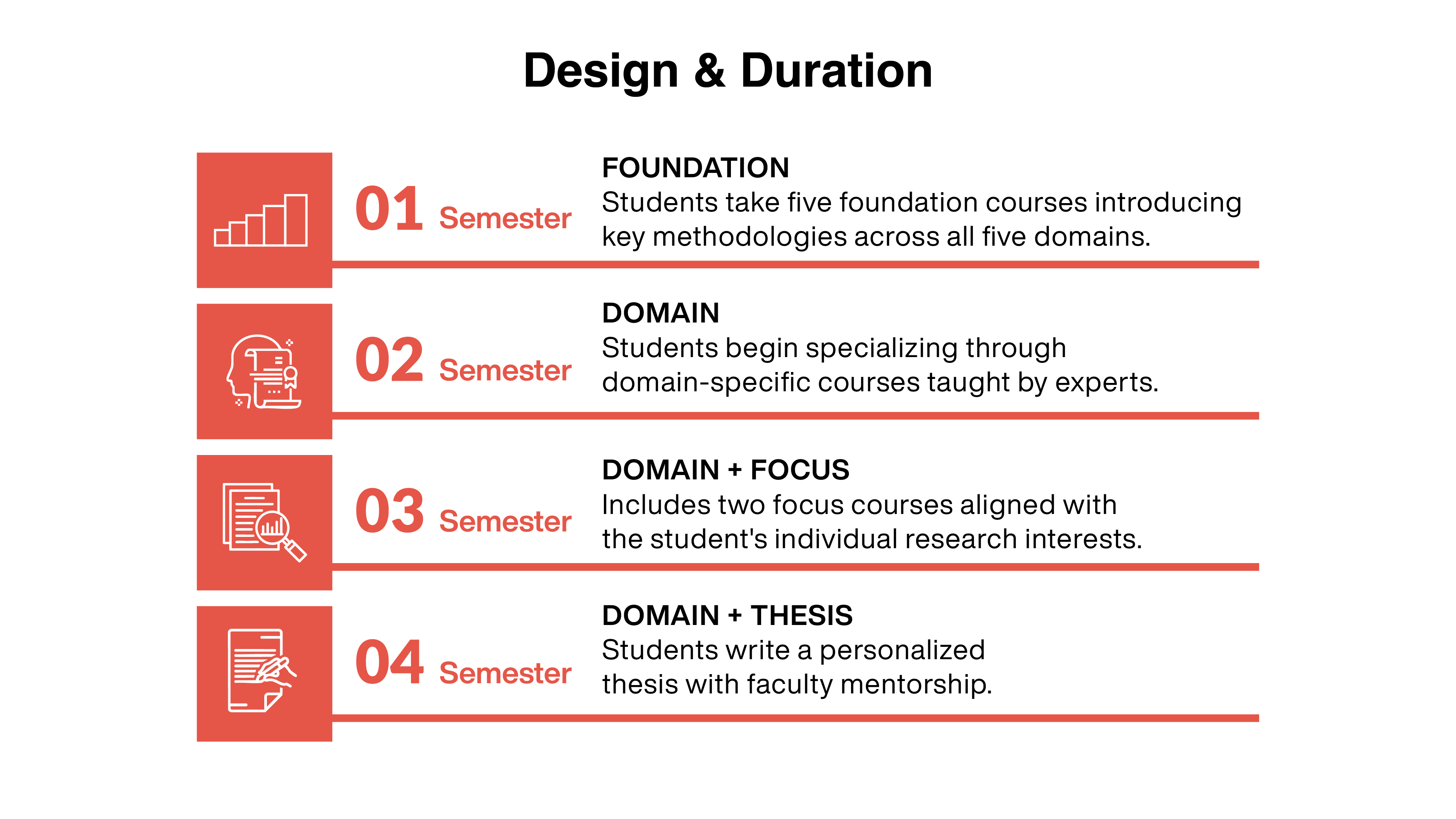 With a research-driven pedagogy that blends interactive learning, MOOCs, and self-directed study, this program strikes a thoughtful balance between multidisciplinary breadth and domain expertise. The program is equipped with study abroad opportunities and dual-degree options with international partner universities.