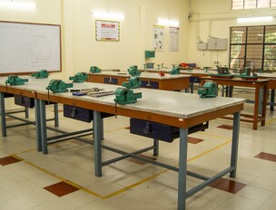 The MIT Workshop Lab is a well-equipped facility that supports machining, fabrication, and welding processes. It houses CNC machines like Turning Centres, Vertical Machining Centres, and Turn Mill, along with milling, grinding, shaping, and drilling machines from renowned manufacturers. Advanced non-traditional machining includes Wire EDM, Water Jet Cutting, and Spark Erosion Machines. The lab also features 3D printers, laser cutting, and plastic injection molding for prototyping. A dedicated welding section offers Electric Arc, TIG, MIG, and Oxy-Acetylene Welding.