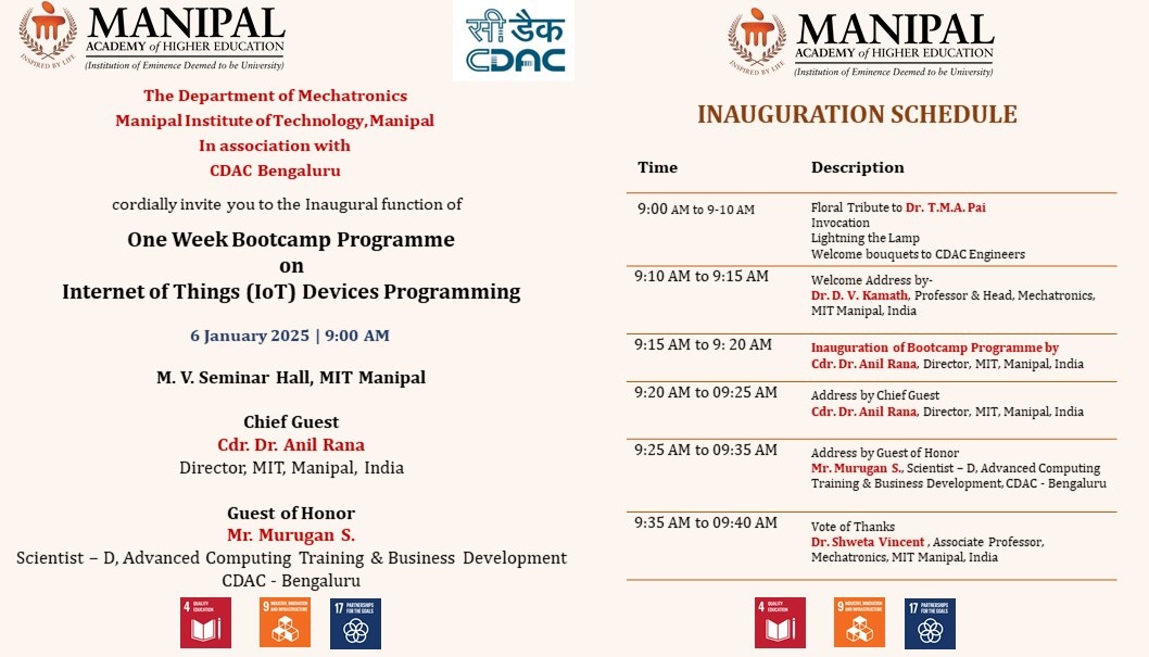 - IoT Boot Camp training by C-DAC, Bangalore, Jan 6-10, 2025