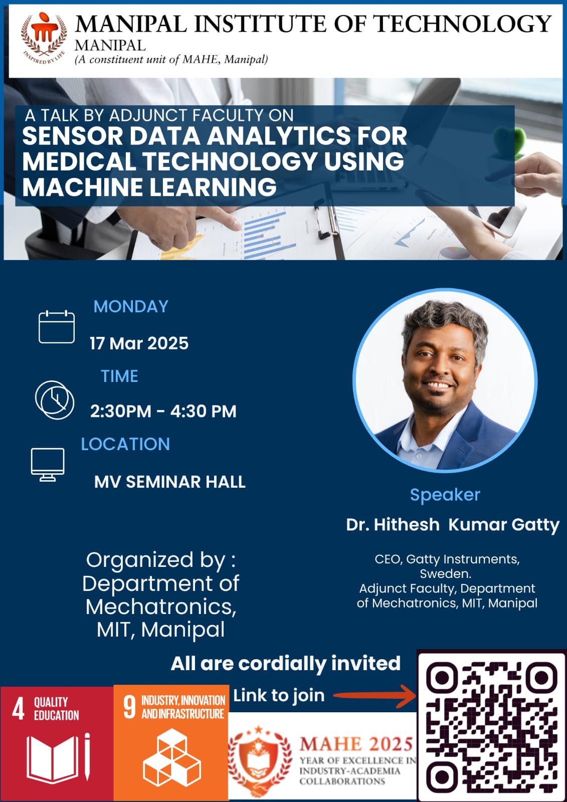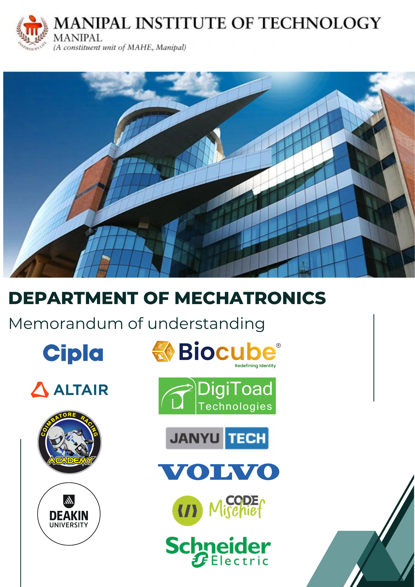 The Department of Mechatronics at MIT Manipal offers a 4-year B. Tech course in Mechatronics since 2006 with an integrated curriculum to provide a broad-based education in the basic principles of electrical, electronics, computing, mechanical, robotics, and modern courses. The department also offers a 2-year M. Tech course in Industrial Automation and Robotics since 2015.