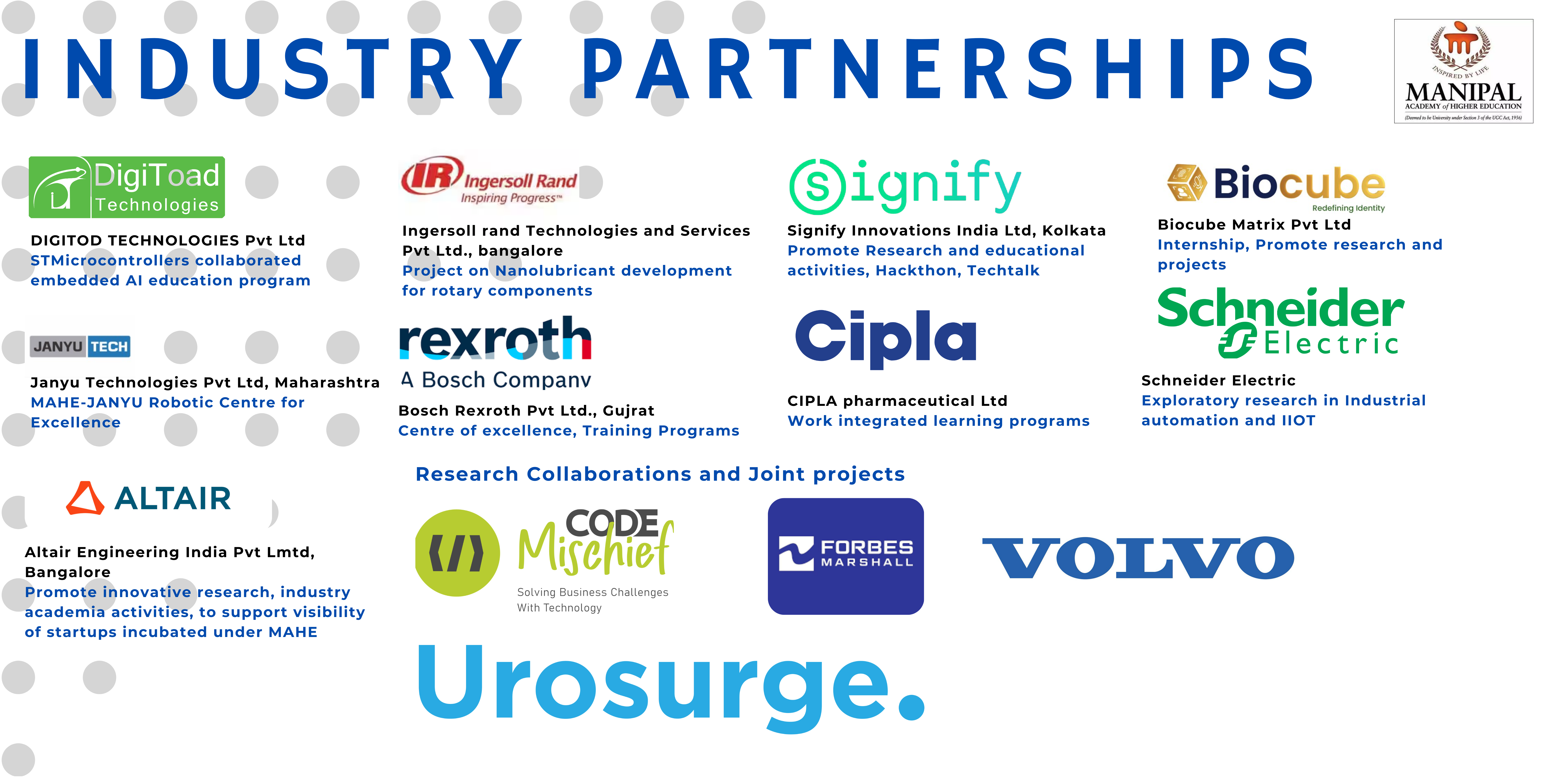 - Mechatronics Systems: The department has expertise in wide range of mechatronics domain and possess some of the most exquisite labs with industrial grade equipment/ devices covering domains like Sensors, Electrical Drives, System design, embedded systems, Robotics, Industrial hydraulics and Pneumatics, Programmable Logic Controllers, Sensorics ,and Microcontrollers.