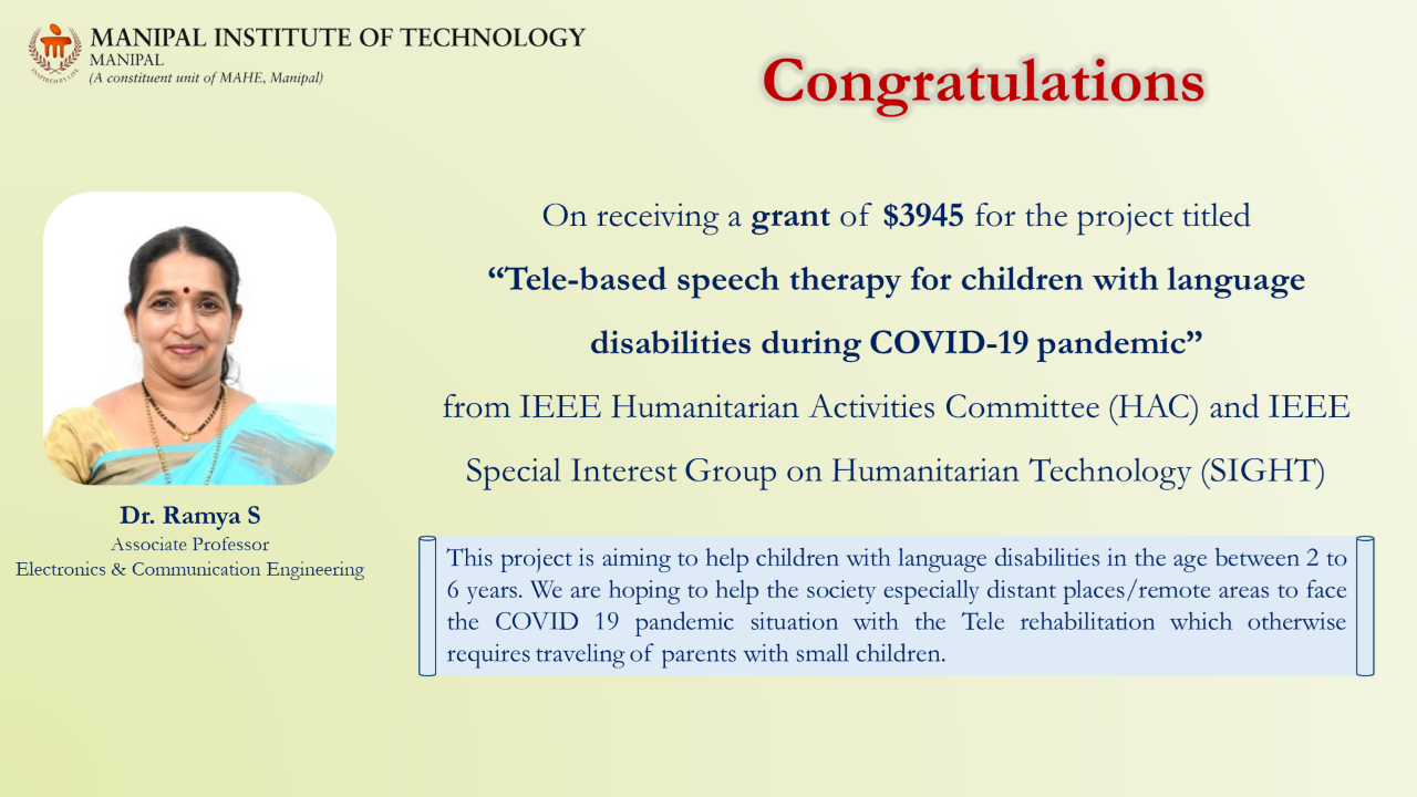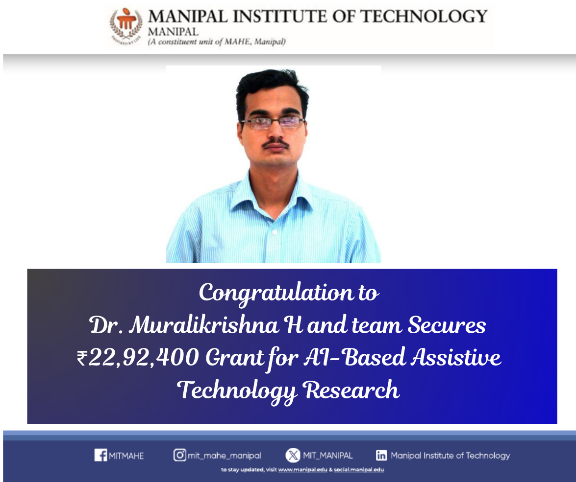 The project has received a significant grant of ₹22,92,400. This remarkable achievement reflects the dedication and innovative spirit of the team and highlights the collaborative strength of various institutions within MAHE and underscores the impact of interdisciplinary research in advancing assistive technologies.