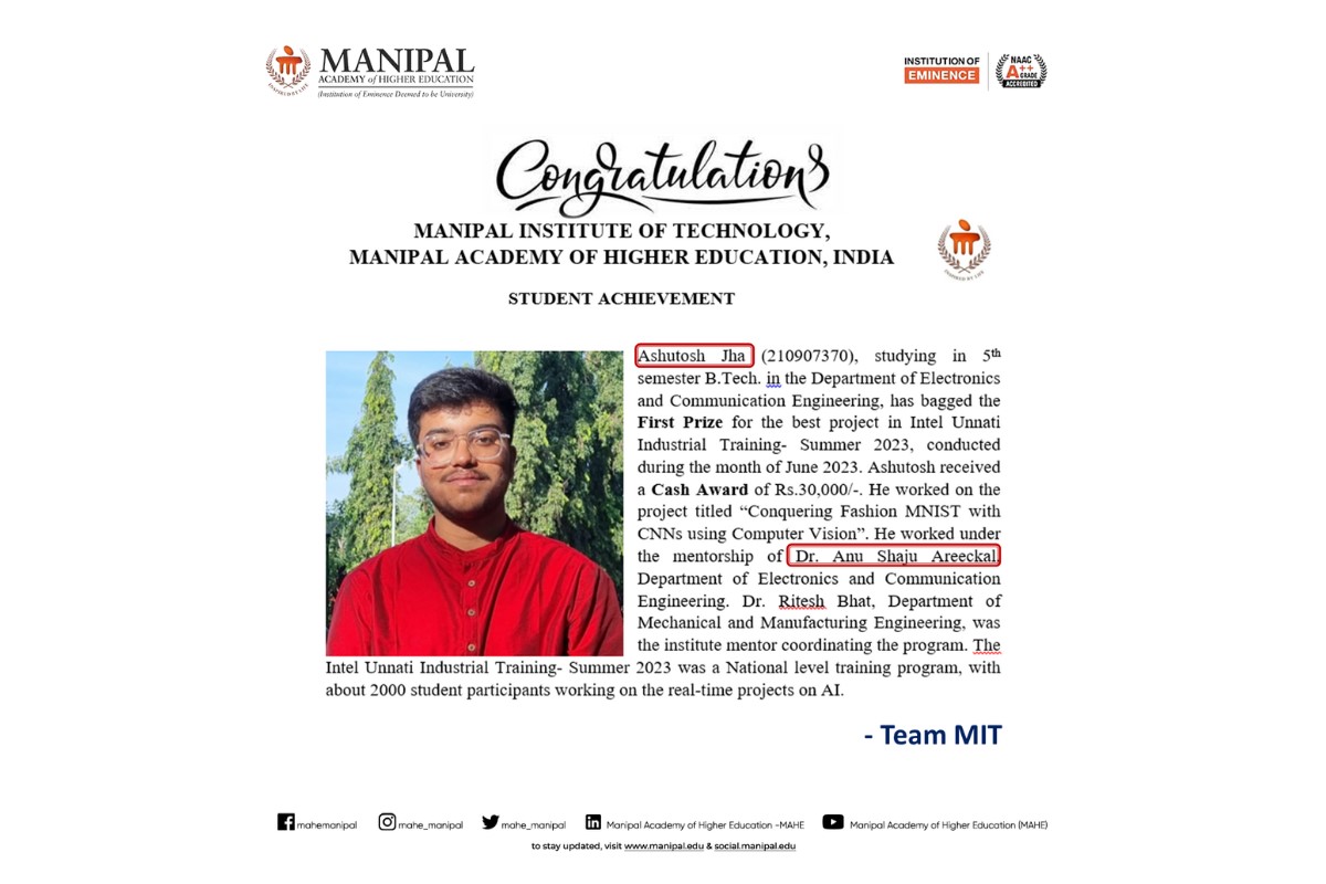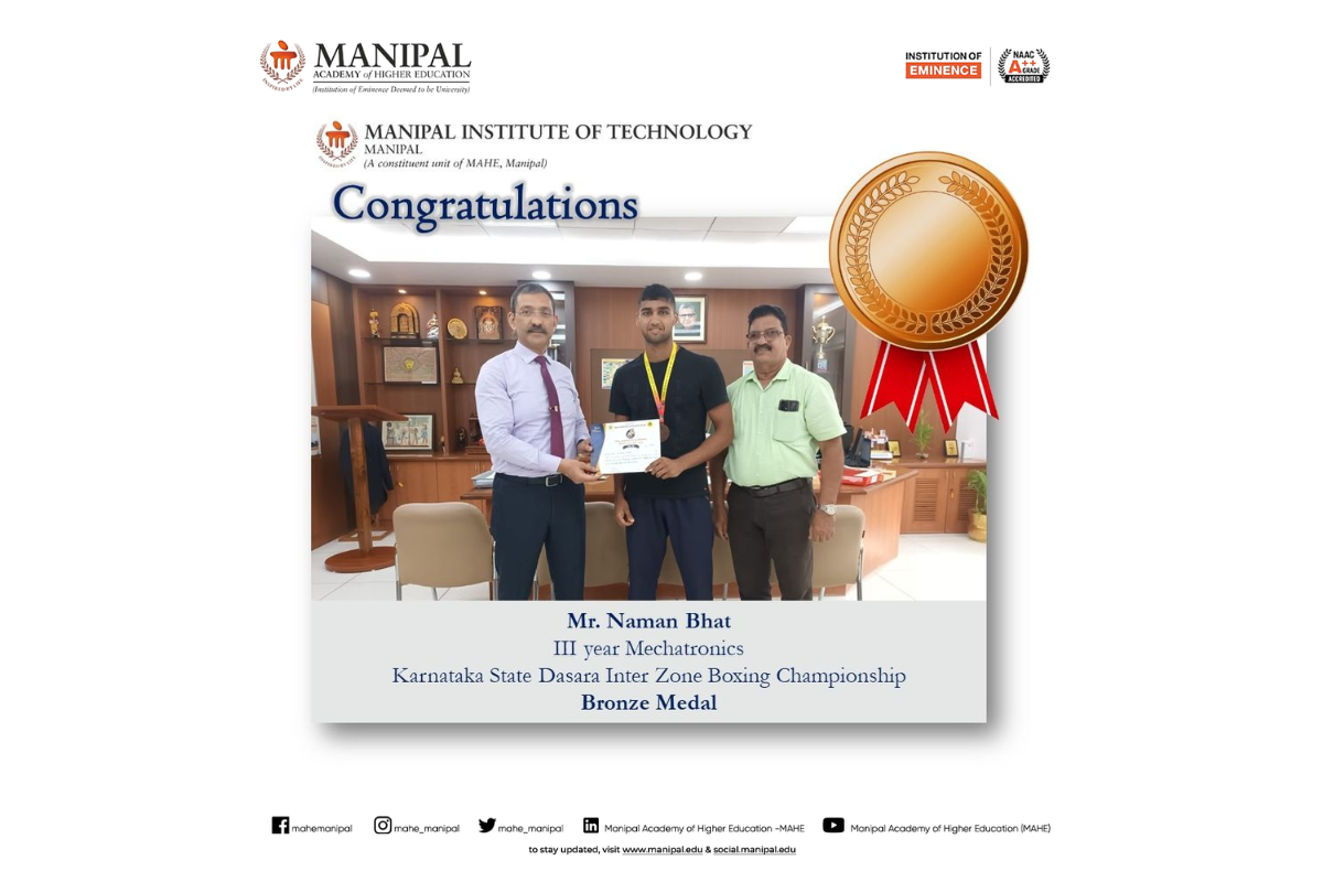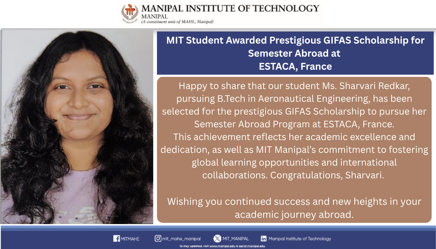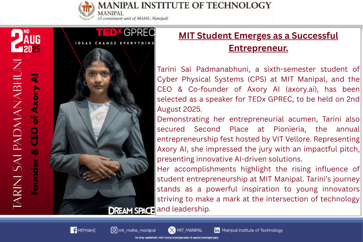 Priyanshu is among only five recipients across Manipal Academy of Higher Education (MAHE), Manipal, making this a moment of great pride for MIT. His dedication to academic excellence, innovation, and leadership continues to inspire his peers.