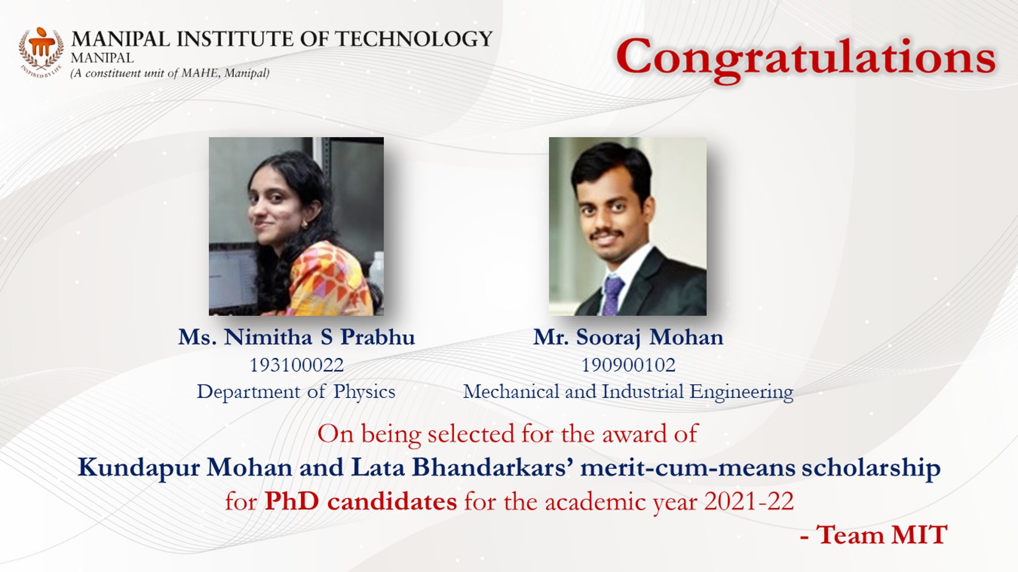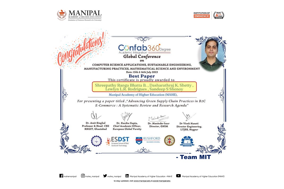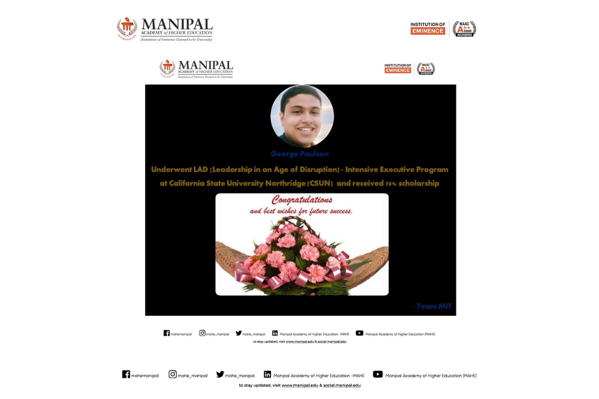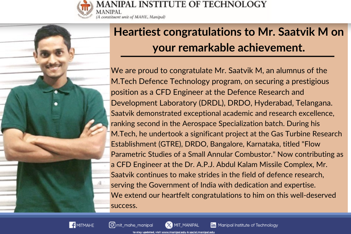 Priyanshu is among only five recipients across Manipal Academy of Higher Education (MAHE), Manipal, making this a moment of great pride for MIT. His dedication to academic excellence, innovation, and leadership continues to inspire his peers.
