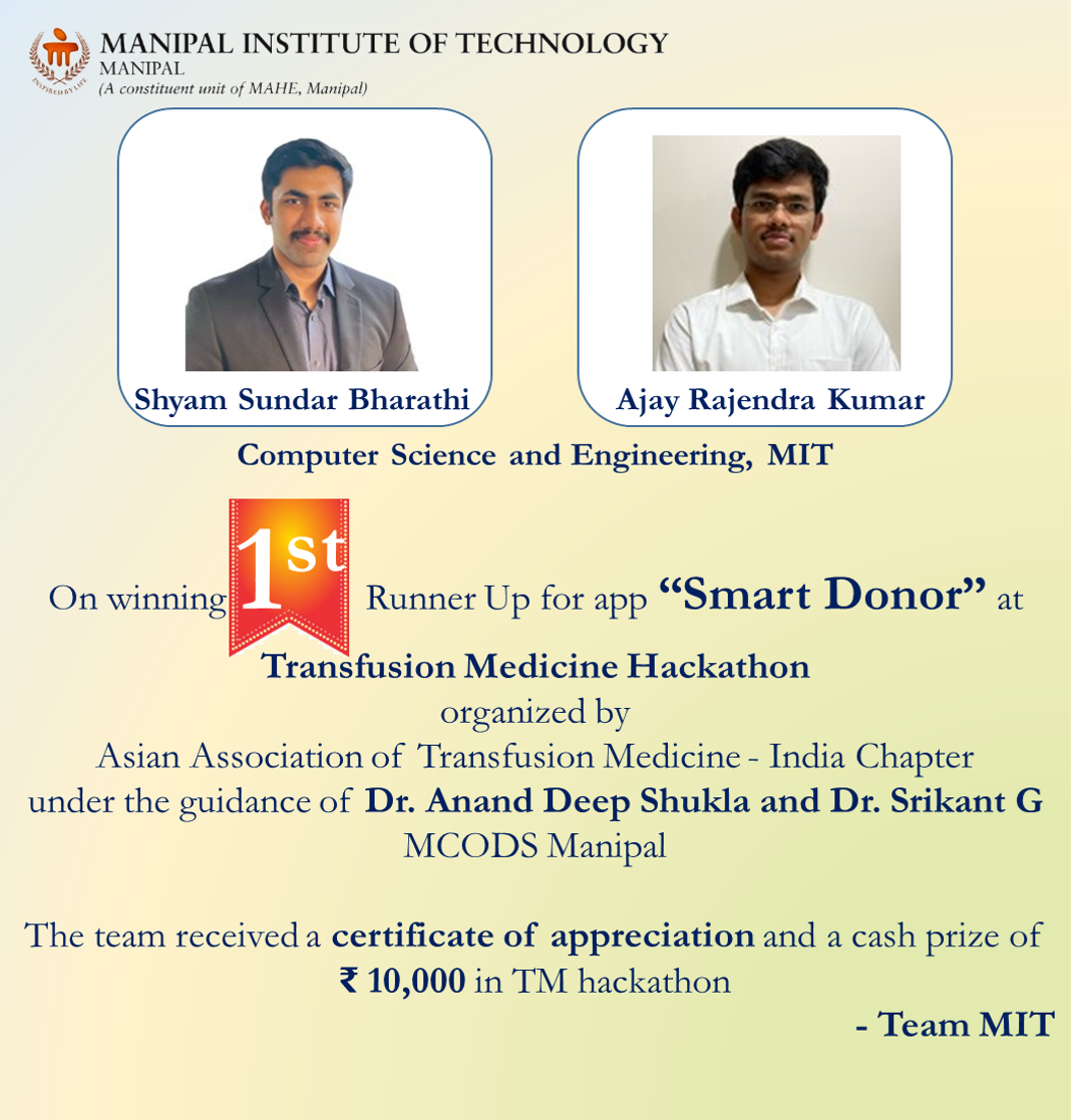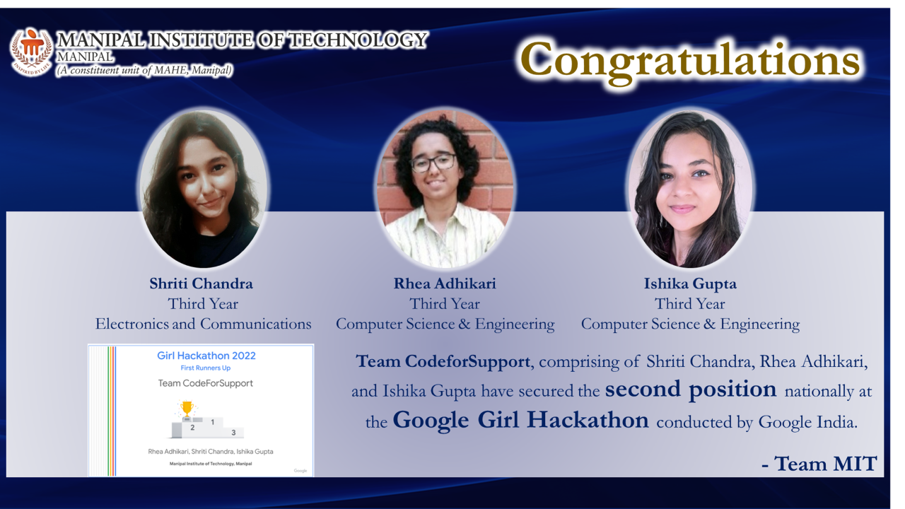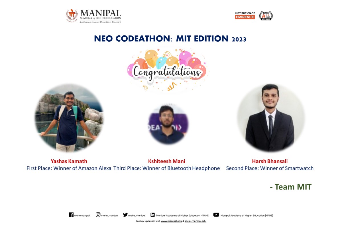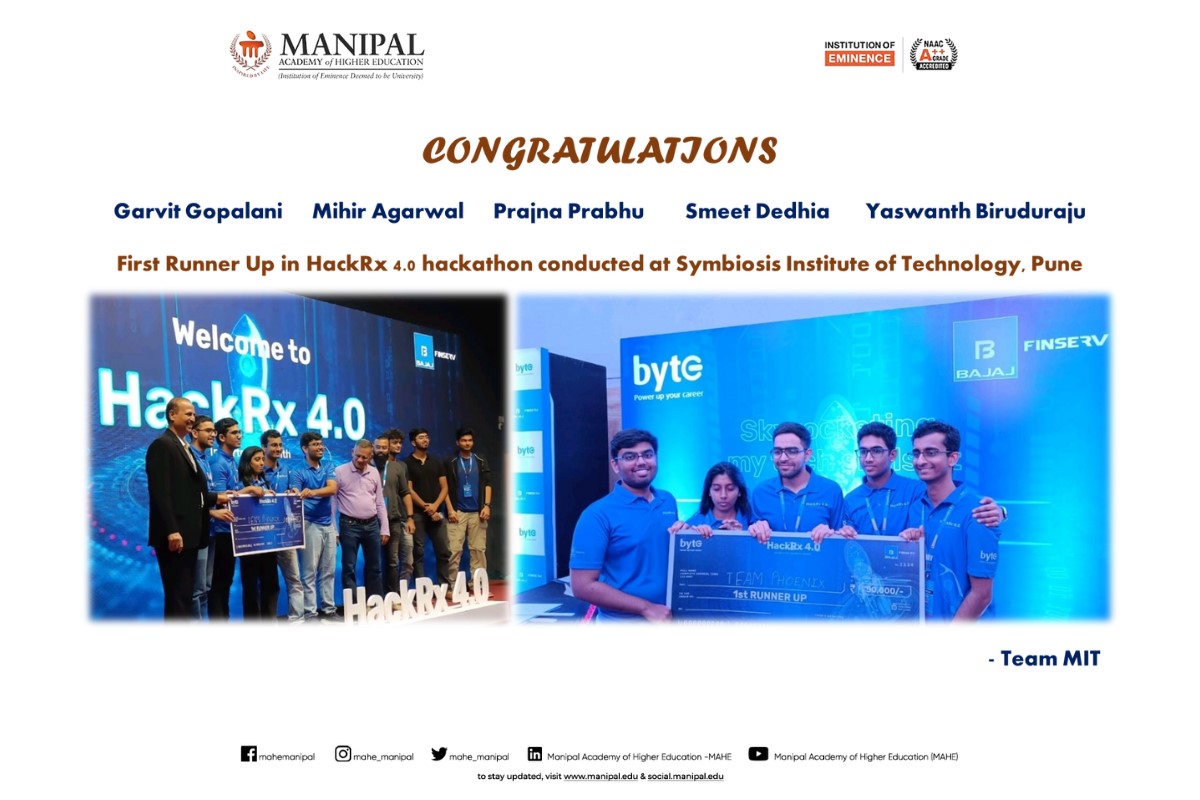 Heartiest congratulations to Team COD3INE on this outstanding achievement, which reflects MIT Manipal’s spirit of innovation, excellence, and leadership in emerging technologies.