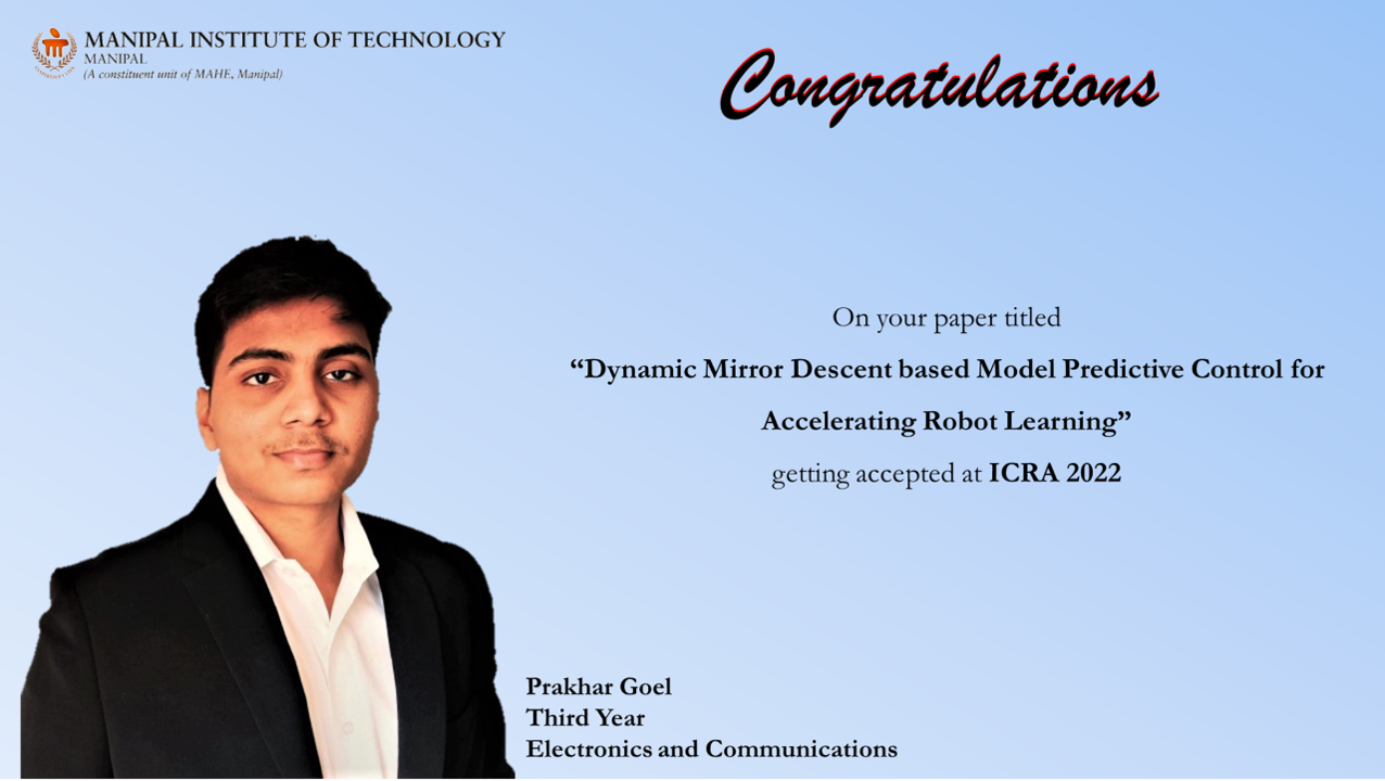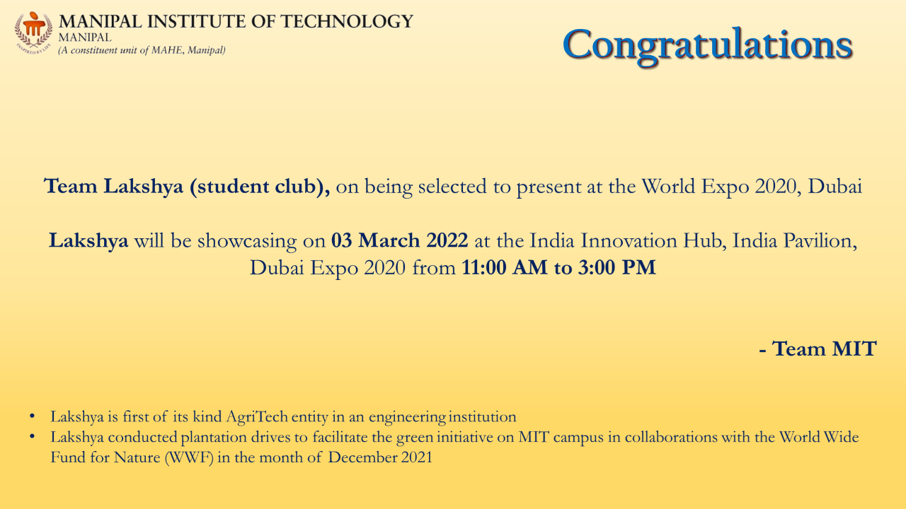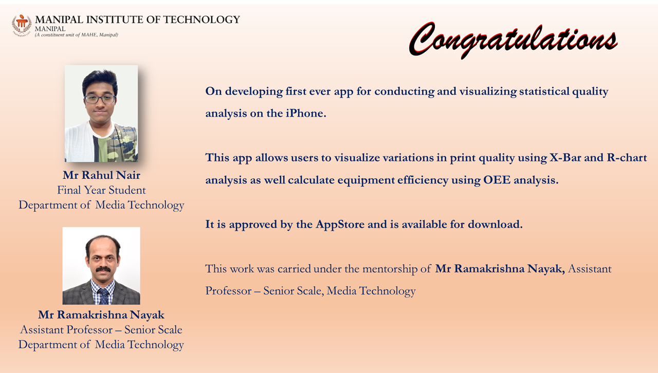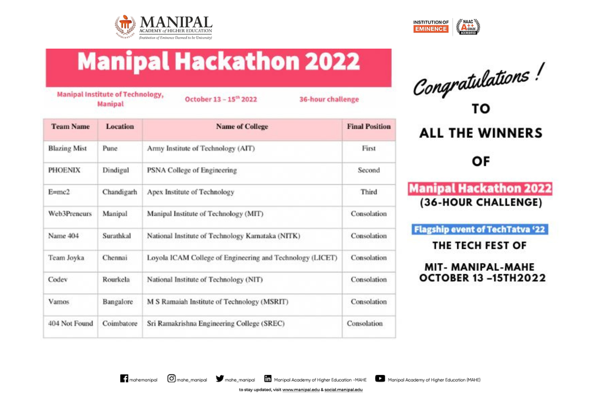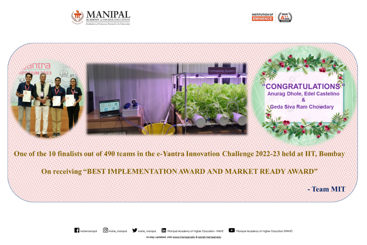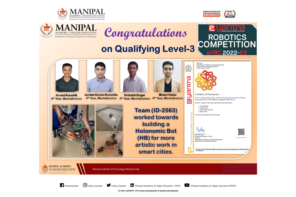 Congratulation to the team with Mr. Mukund Kumar Menon (Instrumentation and Control Engineering), who served as the team mentor, and to faculty advisor Dr. Nisha P. Shetty.