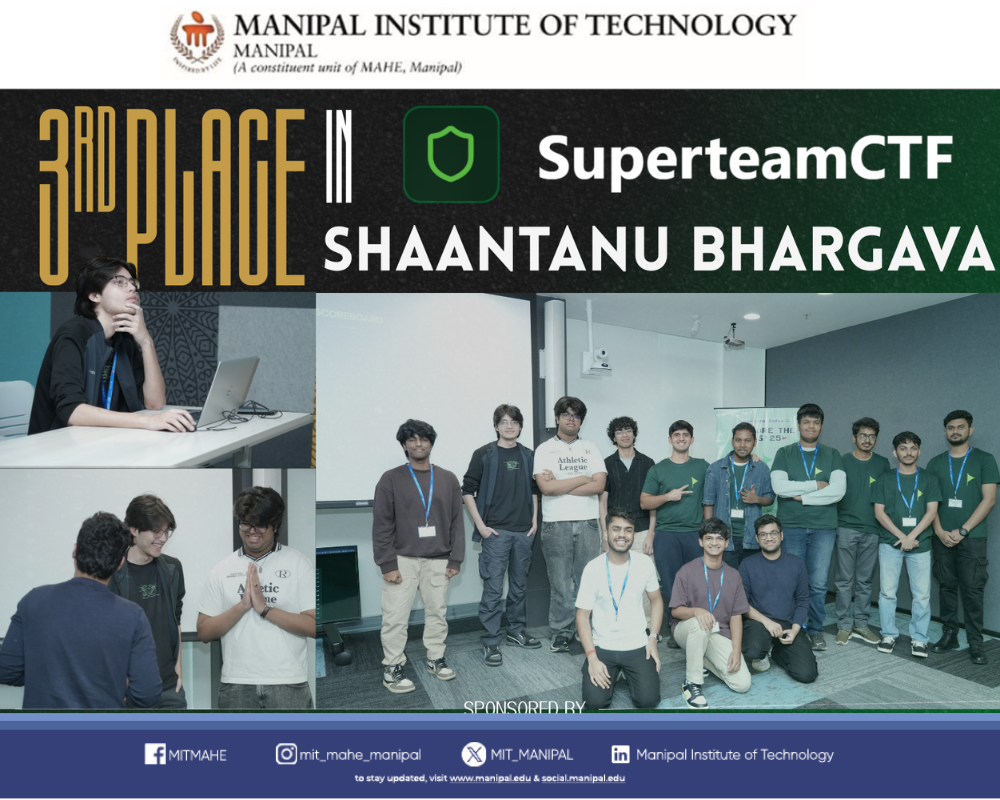 This remarkable achievement highlights our students’ growing expertise in Web3 security and reflects MIT Manipal’s commitment to fostering innovation and excellence. We wish Shantanu and Team Cryptonite continued success and many more milestones ahead.