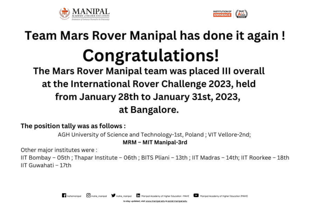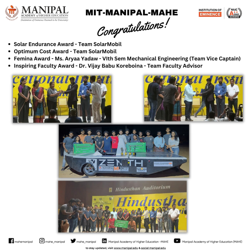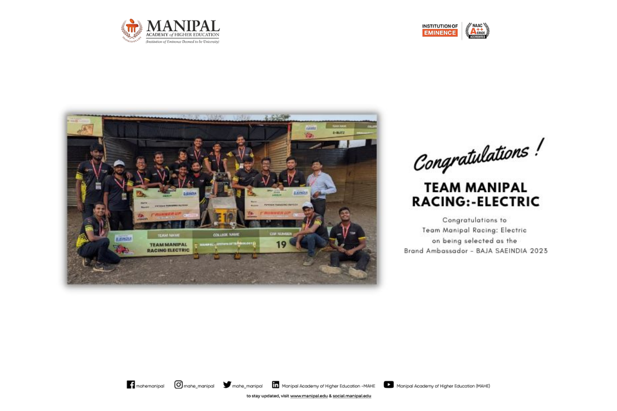 This achievement highlights MIT Manipal’s strong focus on hands-on learning, research, and innovation in the field of electric mobility and motorsports engineering. Congratulations to Team Moto Manipal on this stellar performance.