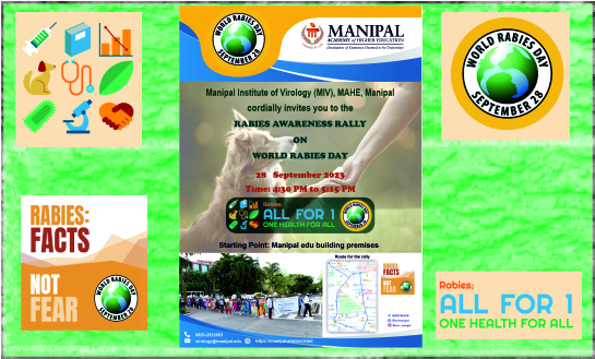 On the occasion of World Rabies Day, Manipal Institute of Virology (MIV) is organizing a rally to spread knowledge about this deadly disease and promote responsible pet ownership. Join us in raising awareness about rabies prevention and the importance of vaccination. Together, we can save lives and create a safer and healthier environment for everyone.