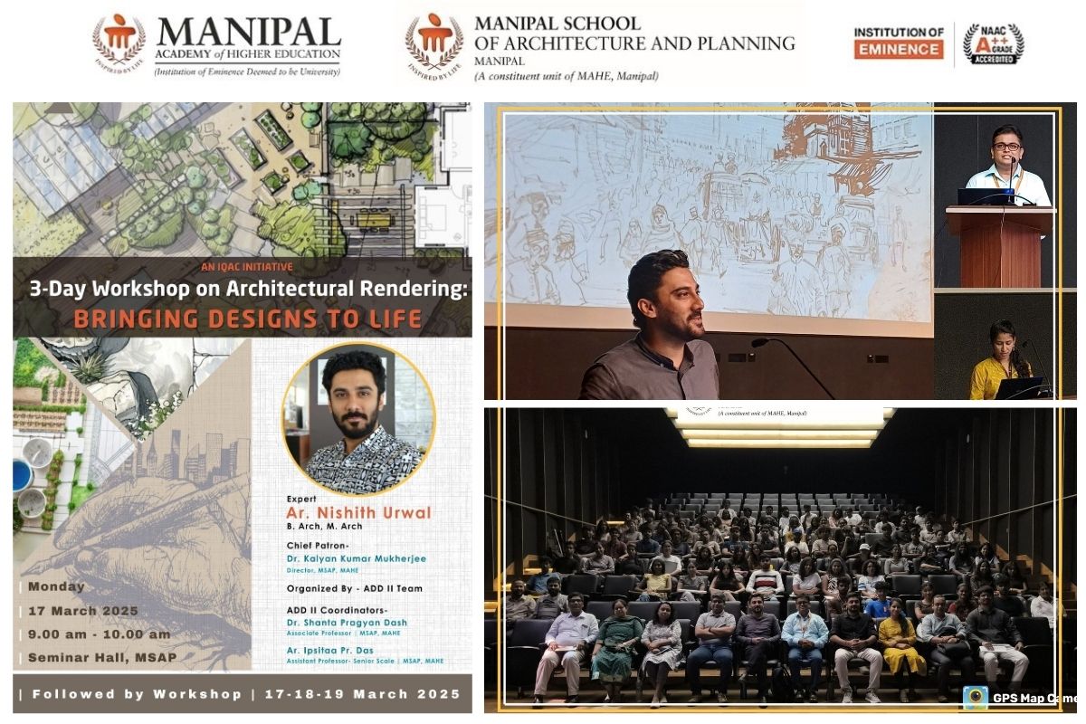 The Manipal School of Architecture and Planning (MSAP) at Manipal Academy of Higher Education (MAHE) recently hosted a dynamic three-days’ workshop on “Architectural Rendering: Bringing Design to Life” for 2nd Semester Architecture Students. The workshop held on the 17th, 18th and 19th of March 2025.