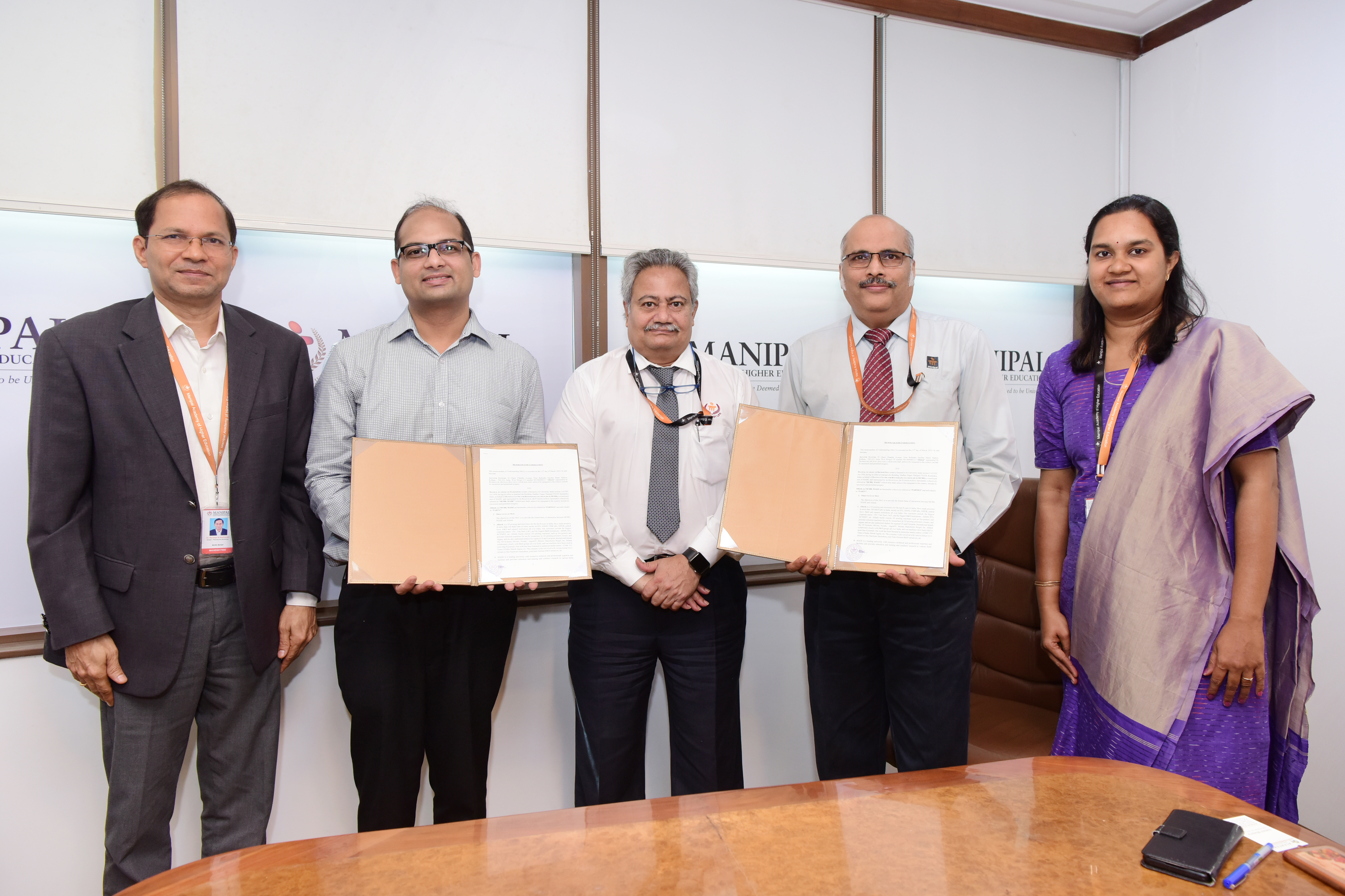 Picture from left to right - Dr Raviraja N S (Director - Corporate Relations, MAHE, Manipal), Dr Giridhar Kini (Registrar, MAHE, Manipal), Dr Sharath Rao (Pro Vice Chancellor – Health Sciences, MAHE, Manipal), Dr Sadhna Joglekar (Head – Global Drug Development, Novartis India), Lt. Gen. (Dr) MD Venkatesh (Vice Chancellor, MAHE), Mr. Jagjit Singh (Learning and Regional Head - Global Drug Development, Novartis India).