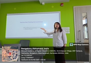 MAHE Bengaluru organized a faculty lecture series on 14th May 2024 at Room No 401, AB2 at 03.00 PM. The lecture was delivered by Dr. O Grace Ngullie, Assistant Professor, DPP-MAHE Bengaluru. The lecture focuses on the title “Constitution: The Ethical Framework for Policy Making’. A total of 15 students and 3 faculties have attended the lecture delivered by Dr Grace.