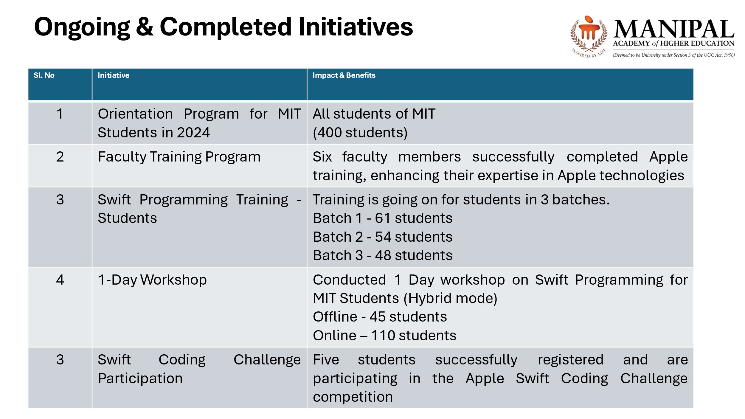 The Apple Center of Excellence (CoE) at MIT Bengaluru organized a one-day hands-on workshop titled "Swift Fundamentals" on December 4, 2024.