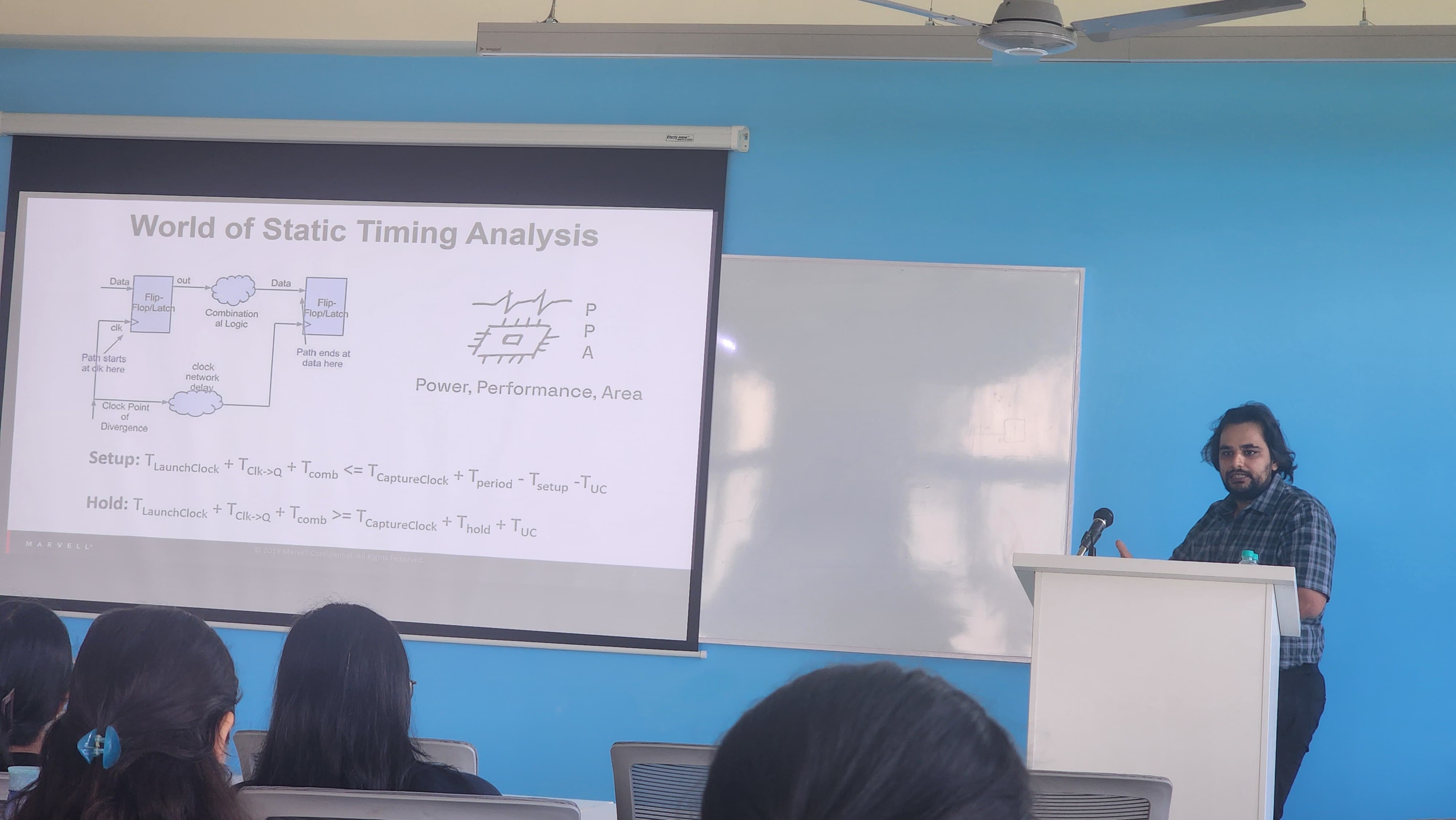 The workshop featured expert sessions by industry professionals: Mr. K.S. Sainarayan, Mr. Krishna Patil, and Mr. Shourya Shukla from Marvell Semiconductor India Pvt. Ltd., Mr. Shekar Jha from Analog Devices India Pvt. Ltd., Mr. Sitaram Banda from Renesas Electronics, and Mr. Ramadas M from Ventana Microsystems. These resource persons shared their extensive industry experience, greatly enriching the learning experience for the participants.