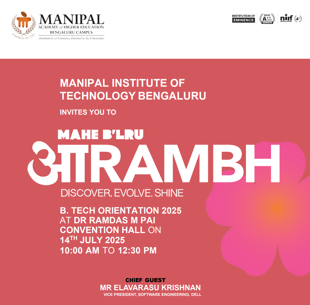 We warmly invite all first-year students to our orientation program. It’s your first step towards an amazing journey at MIT-BLR.