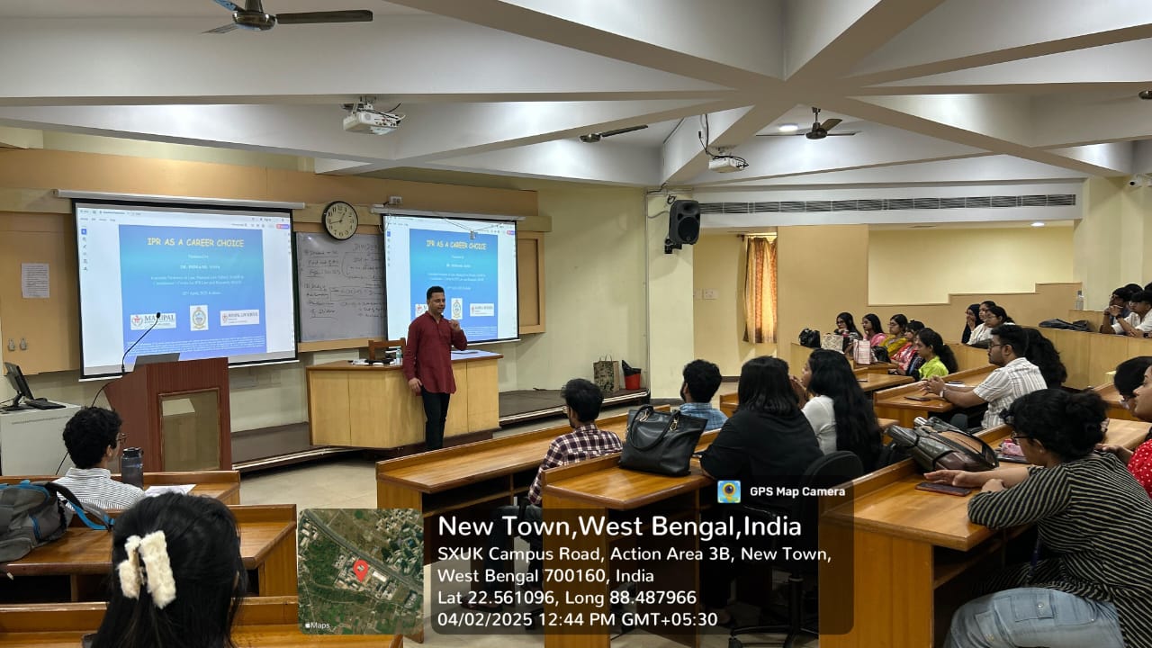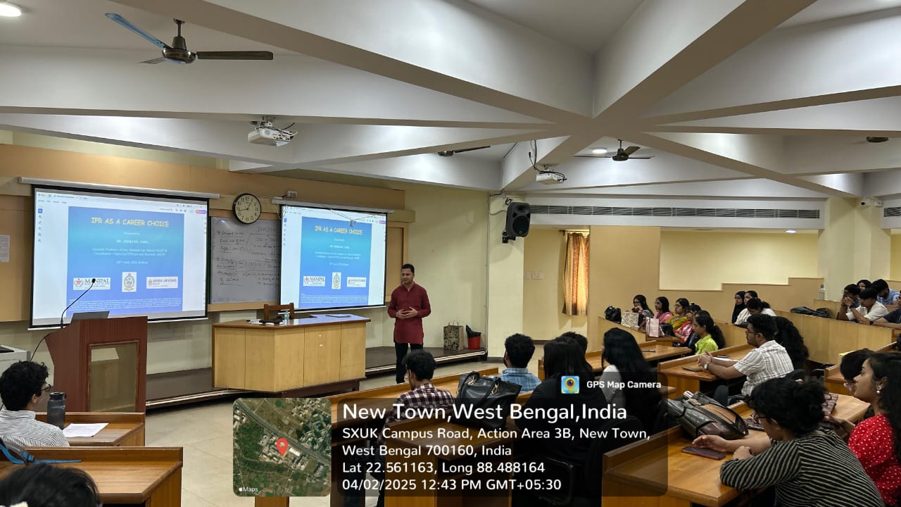 (4) Dr Indranil Saha, Coordinator of the Centre was an invited speaker in the one day seminar as an expert on the topic of “IPR as a Career Choice”, Xavier Law School, St. Xavier’s University, Newtown, Kolkata in collaboration with Centre for IPR Law & Research, MAHE, 02nd April, 2025.