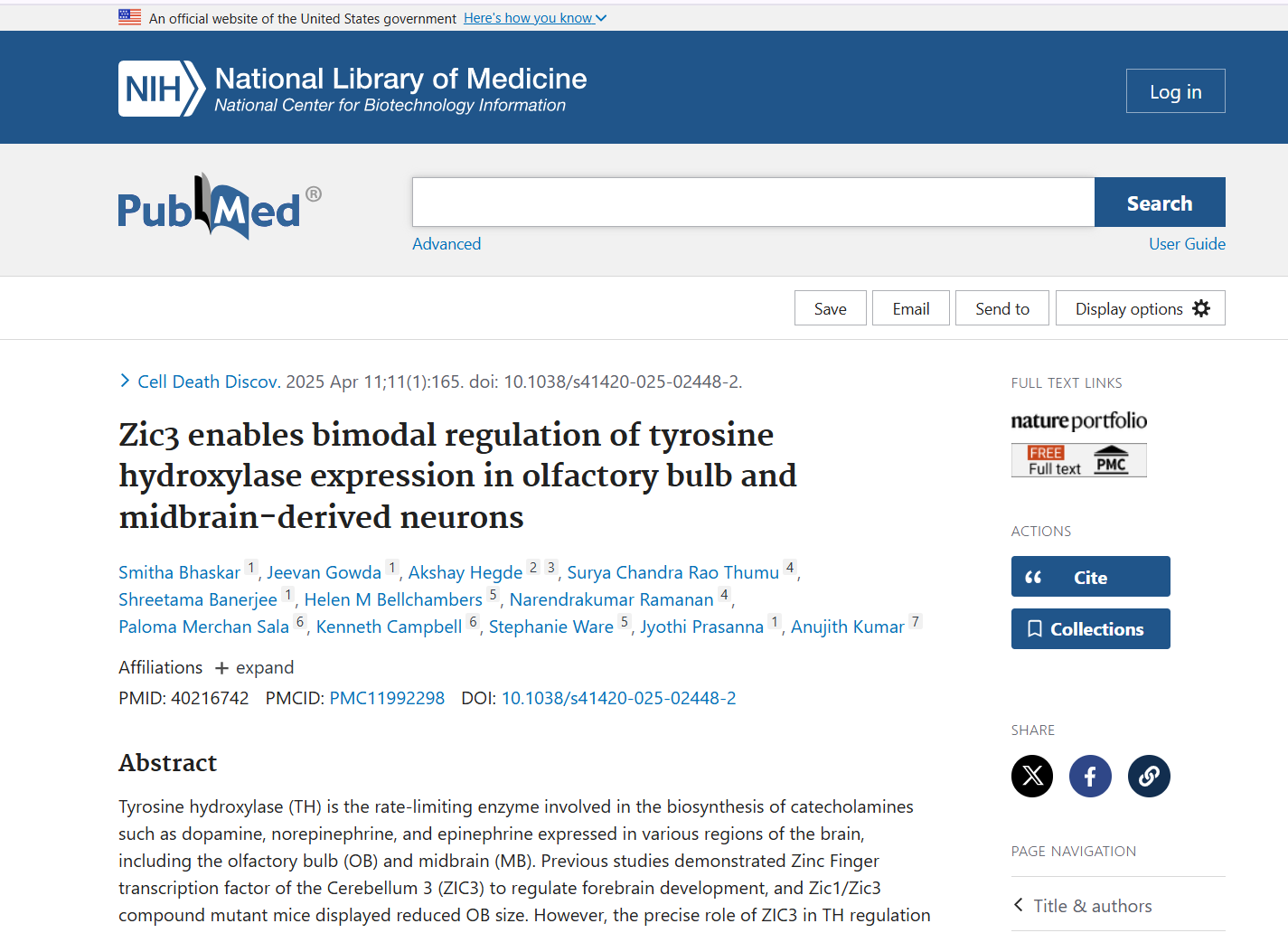 Congratulations to Ayona Gupta (Dr. Uttara's lab) and Nasera Rizwana (Dr. Manasa's lab) for securing CSIR SRF fellowship under the Life Sciences category.