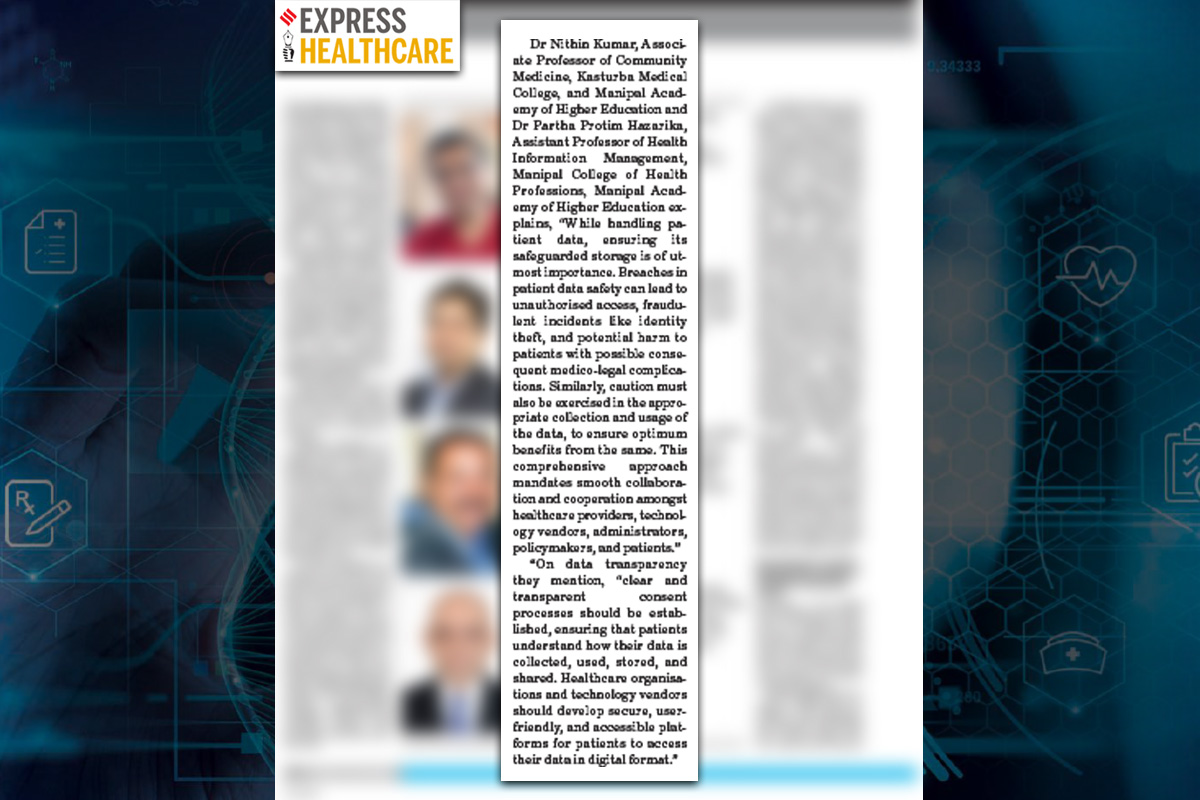 Manipal, 07 June 2023: Dr Nithin Kumar, Associate Professor of Community Medicine, Kasturba Medical College (KMC), Mangalore and Dr Partha Protim Hazarika, Assistant Professor of Health Information Management, Manipal College of Health Professions (MCHP), Manipal. Shared their views on cyber security in healthcare infrastructure with Express Healthcare Magazine.