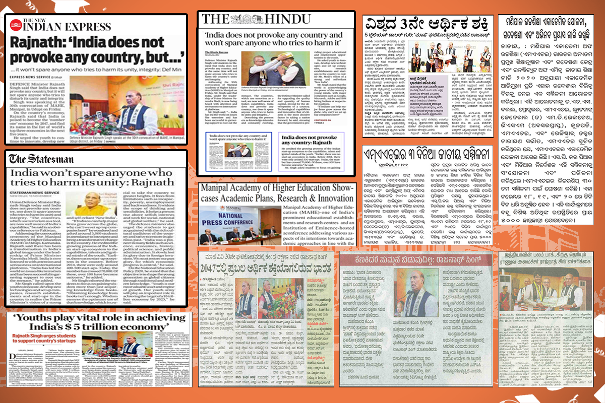 Dr Rajnath Singh also added,” Manipal Academy of Higher Education is a highly reputed institution for research and innovation around the world. Manipal’s group of educational institutes succeeds and reflects Dr TMA Pai’s values. He is a legendary institutional builder. He was ahead of his time and a visionary personality. Other successes of Dr. TMA Pai are Manipal (MAHE) and the Syndicate bank he founded. Manipal gives emphasis on education and the employability of its students. Mr Satya Nadella is one of the examples of this institute. He is leading Microsoft. I want to see hundreds of Satya Nadella’s from this institution to lead India and the world. Institutions like Manipal have important contributions to the nation”