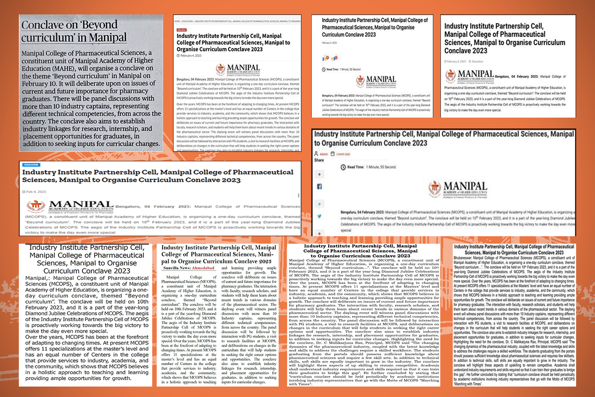 Manipal, 6th February 2023: Manipal College of Pharmaceutical Sciences (MCOPS), a constituent unit of Manipal Academy of Higher Education, is organising a one-day curriculum conclave, themed “Beyond curriculum…”. The conclave will be held on 10th February 2023, and it is a part of the year-long Diamond Jubilee Celebrations of MCOPS. The aegis of the Industry Institute Partnership Cell of MCOPS is proactively working towards the big victory to make the day even more special.