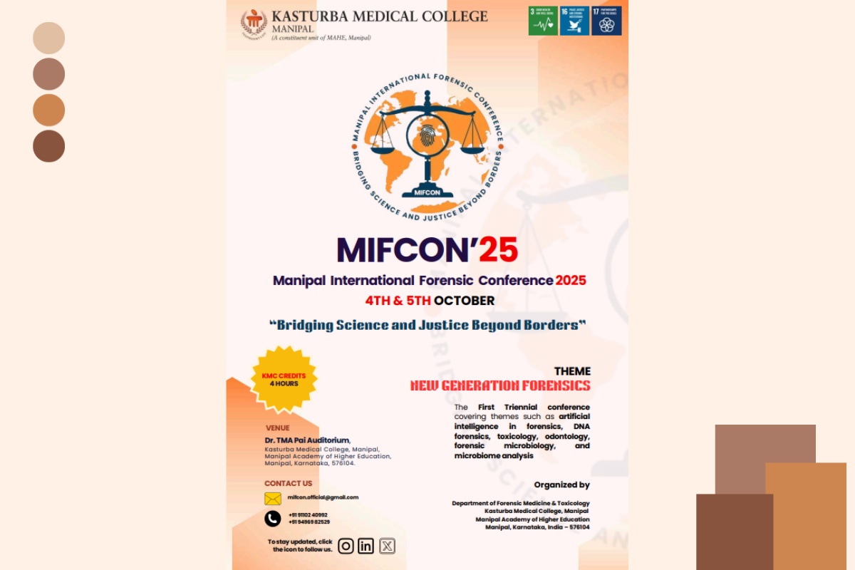 The Department of Forensic Medicine and Toxicology, Kasturba Medical College (KMC), Manipal, will host Manipal International Forensic Conference (MIFCON), the first triennial international forensic science conference. The event aims to provide a dynamic platform for graduates, researchers, and faculty to engage in meaningful discussions, present innovations, and explore the latest advancements in forensic science