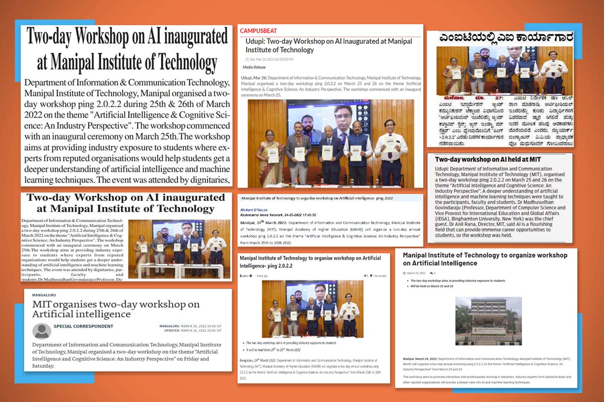 Manipal, 28th March 2022: Department of Information & Communication Technology, Manipal Institute of Technology, Manipal organized a two-day workshop ping 2.0.2.2 during 25th & 26th of March 2022 on the theme "Artificial Intelligence & Cognitive Science: An Industry Perspective". The workshop commenced with an inaugural ceremony on March 25th.