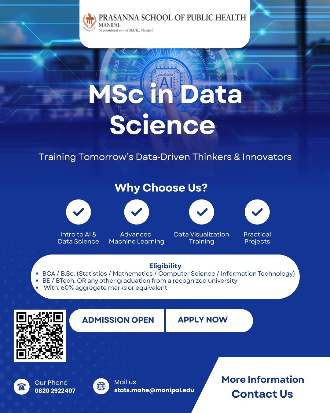 Prasanna School of Public Health offers multi-disciplinary programmes for both the industry and academia. We offer one undergratuate six postgraduate programmes and four certificate courses.