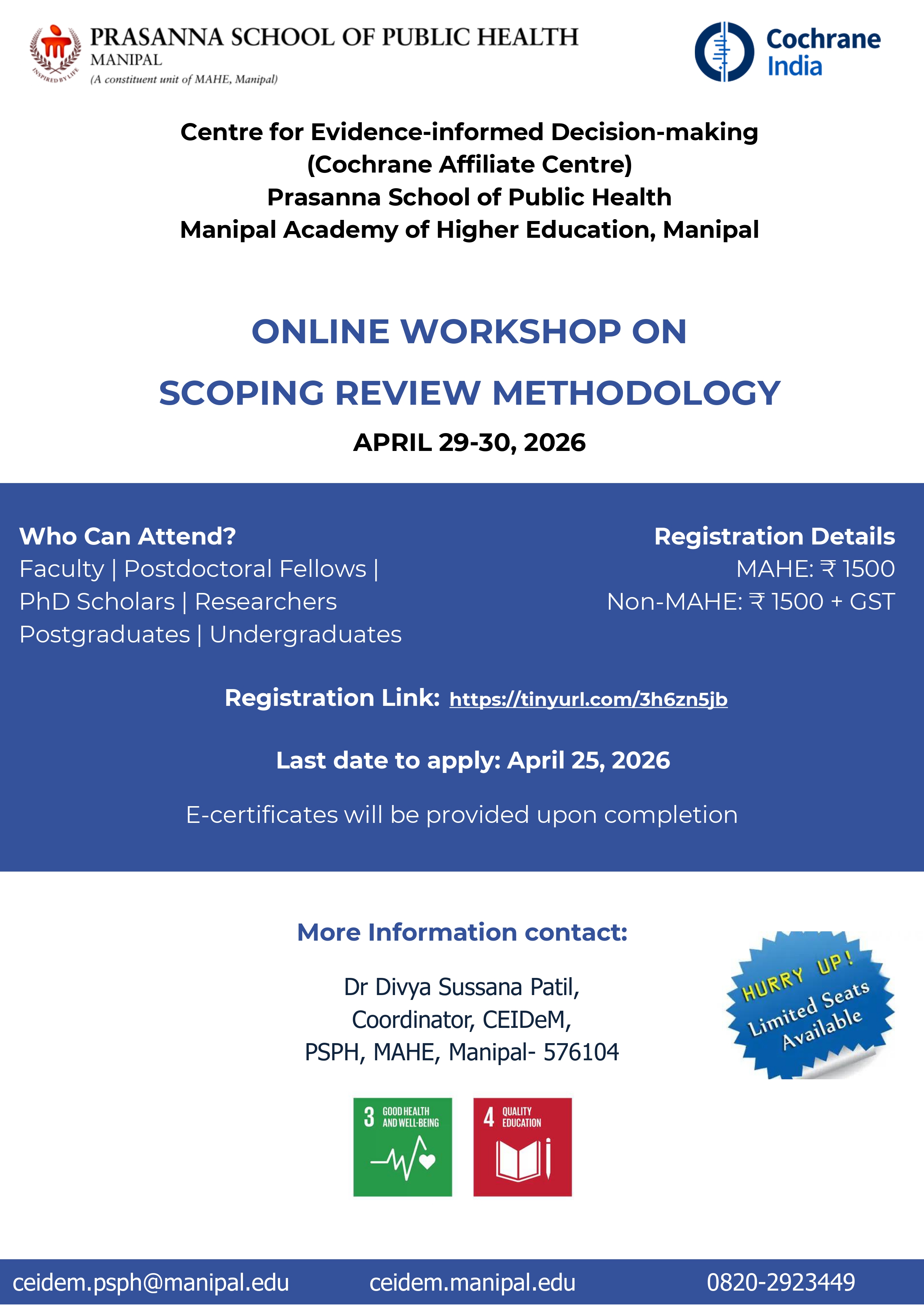 Prasanna School of Public Health seeks to facilitate and pursue new research initiatives that cut across the traditional disciplinary lines enhancing the research capacity through academic and outreach initiatives. PSPH has created inter-disciplinary research units to build research appetite among its faculty and students and to develop networks with researchers, research centers building, industry and community.