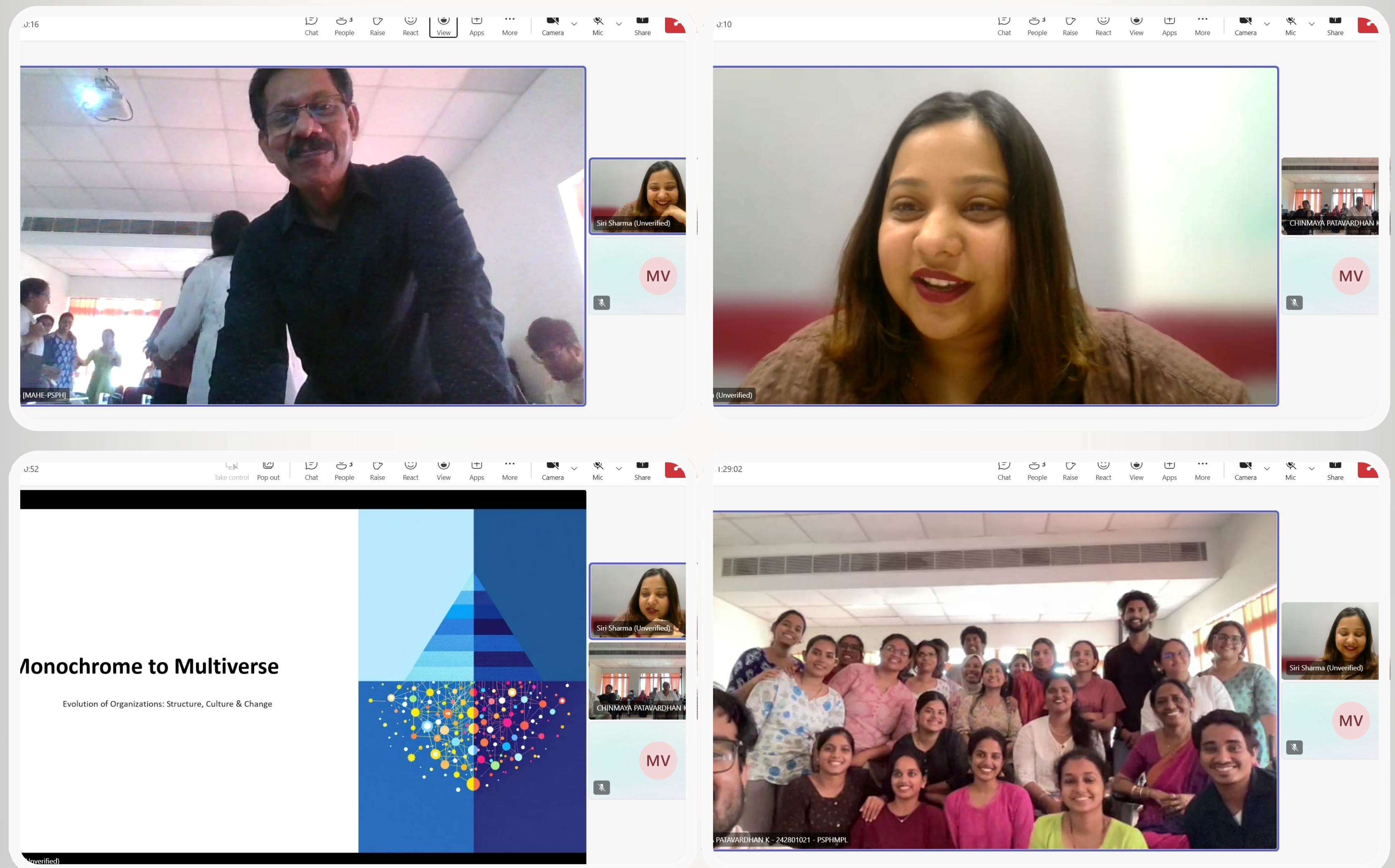 The Alumni Cell, Placement Cell and the Career Counselling Cell (CCC), Prasanna School of Public Health (PSPH), Manipal Academy of Higher Education (MAHE), Manipal organised an Alumni Interaction Session on “The Organisational Structure, Culture, and Change Management in Relation to Organisational Behaviour” on Tuesday, September 16, 2025 (11:30 to 12:30 hours IST) virtually through Microsoft Teams.