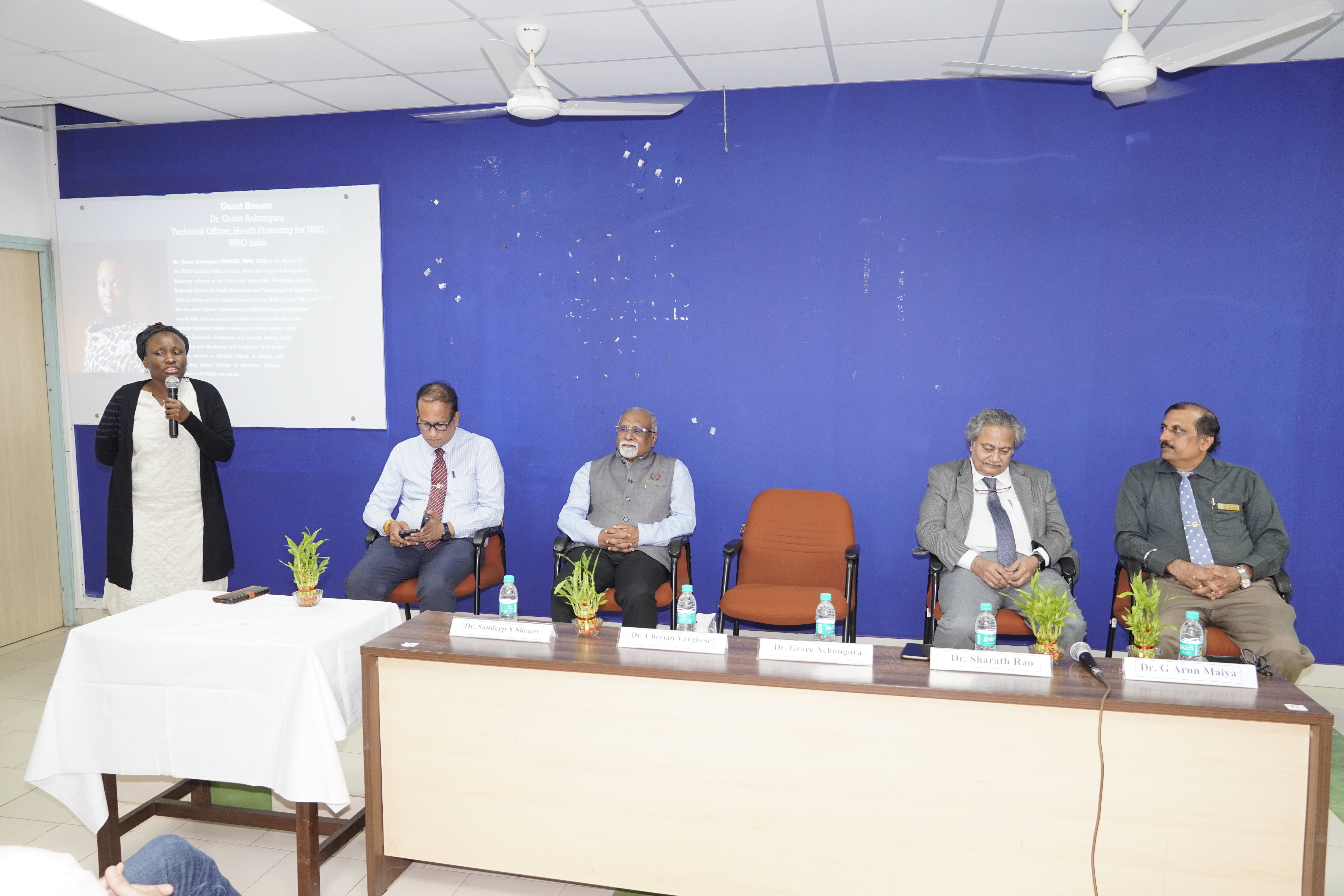 Department of Commerce (DoC), Manipal Academy of Higher Education (MAHE), Manipal; Department of Global Public Health Policy and Governance (GPHPG), Prasanna School of Public Health (PSPH), MAHE, Manipal; Department of Health Information Management, Manipal College of Health Professions (MCHP), MAHE, Manipal; Team Health Financing for UHC-HCF, WHO (World Health Organisation) - India organised the Four Day Capacity Building Programme on “UHC (Universal Health Coverage) – Advanced Healthcare Financing: Real-World Applications from Theory to Practice” from November 05 to 08, 2024 in the Lecture Hall 102, First Floor, Old Tapmi Building, DoC, MAHE, Manipal.