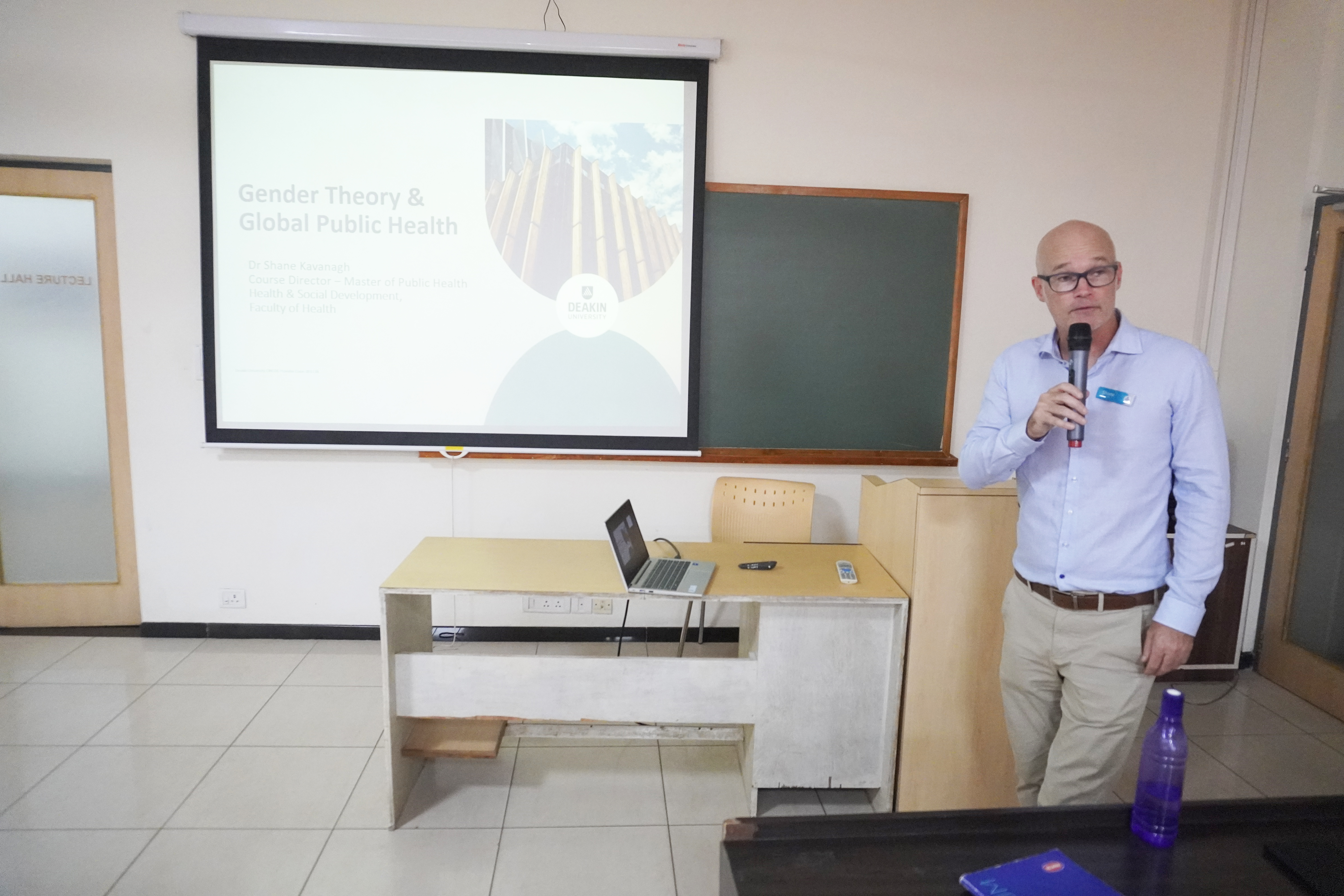 Our resource person Dr Shane Kavanagh, Course Director, Master of Public Health Programme, School of Health and Social Development, Deakin University, Australia spoke about varied topics on gender theory, public health, global health, global public health; the perceptions regarding sex, gender; the roles played by females, males over the course of human civilization; various measures, schemes, campaigns, research studies done throughout the world regarding the health and well-being of females, males; the impact of climate health, economies of the countries on the health of females, males throughout the world etc.