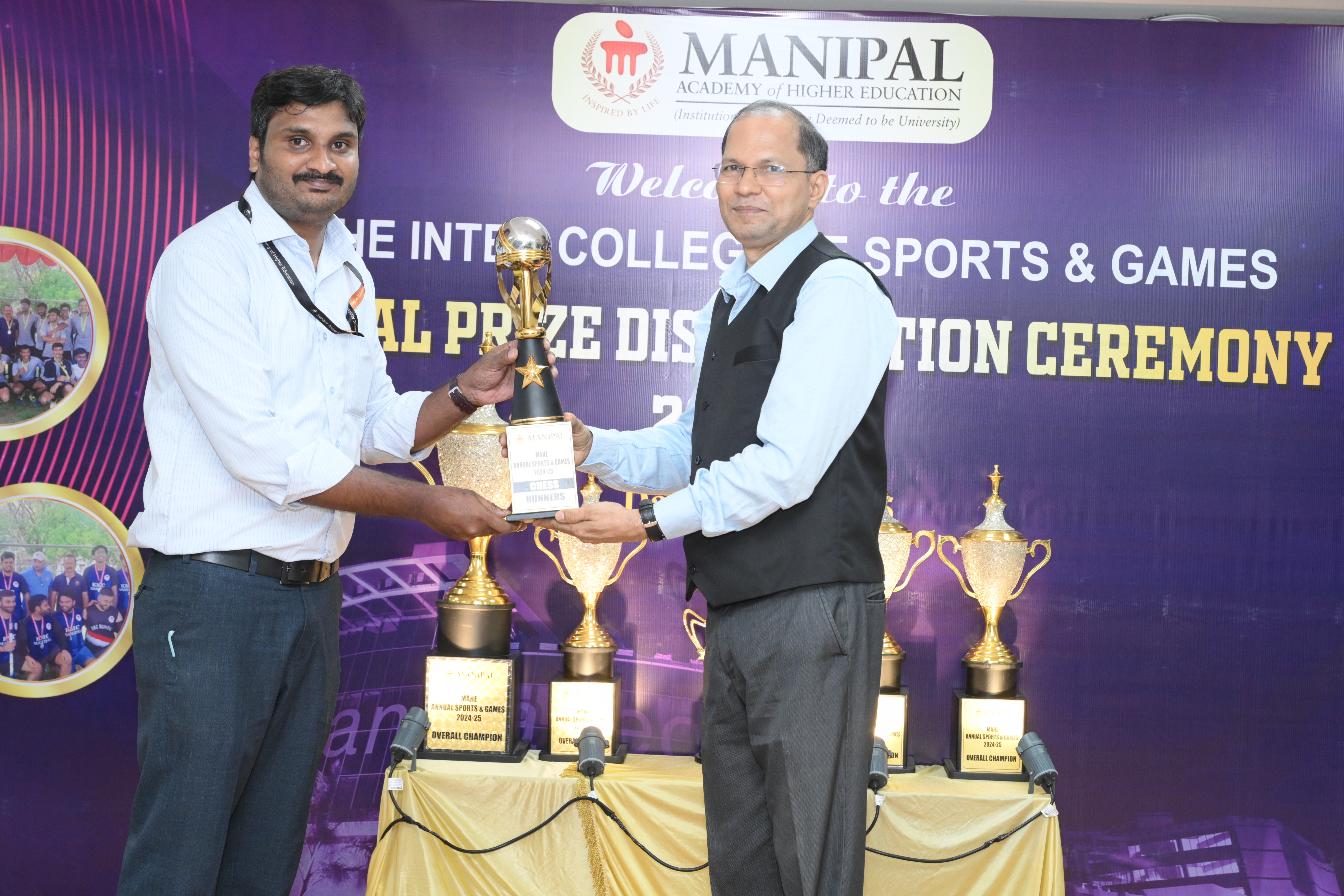 The Sports Council, MAHE, Manipal, organised the MAHE Annual Sports and Games Prize Distribution Ceremony 2024-2025 on Friday, May 02, 2025 (16:00 hours IST) in the Counselling Hall, Edu Building, MAHE, Manipal.
