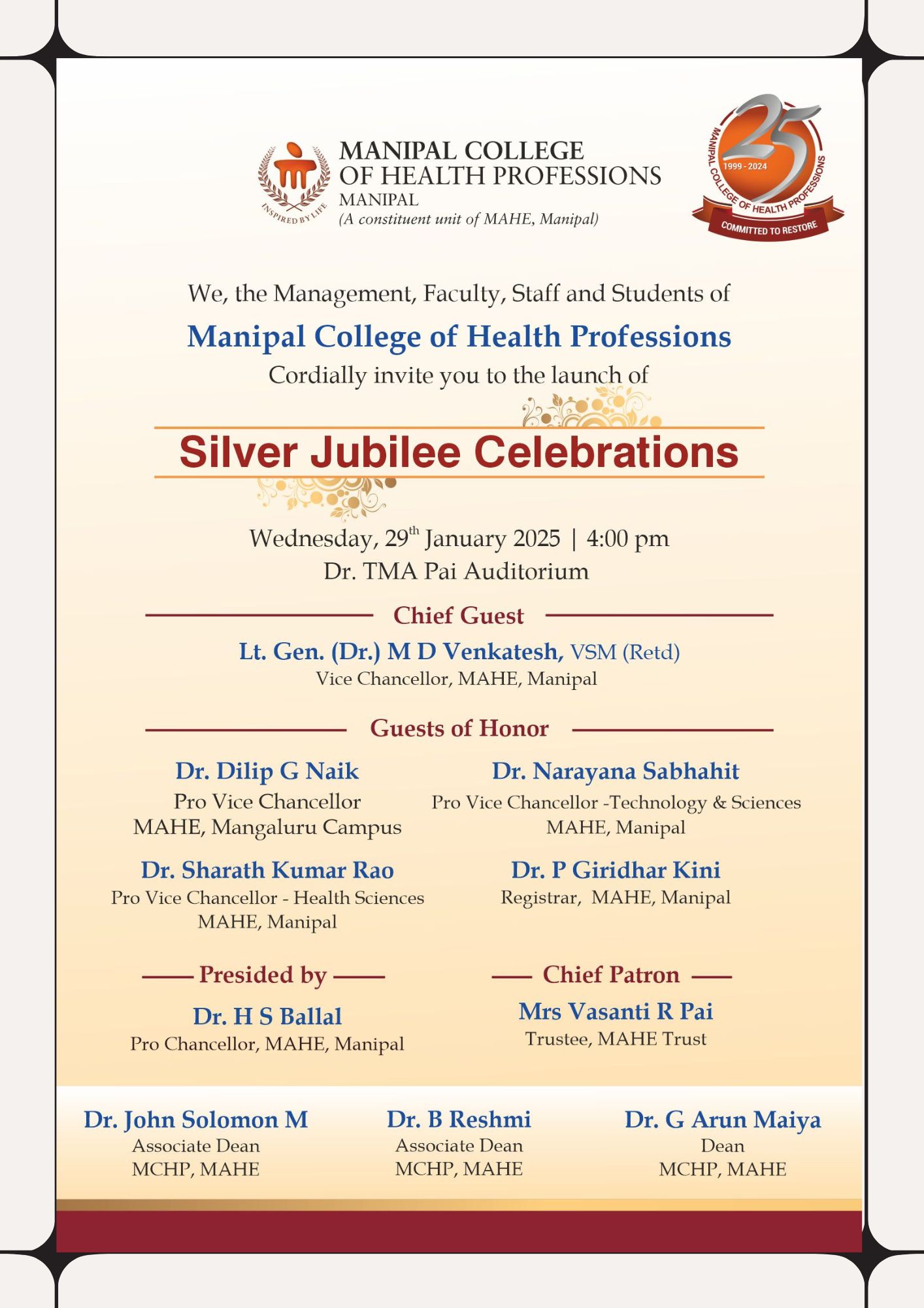 Venue: Sharadha Hall, Manipal College of Health Professions